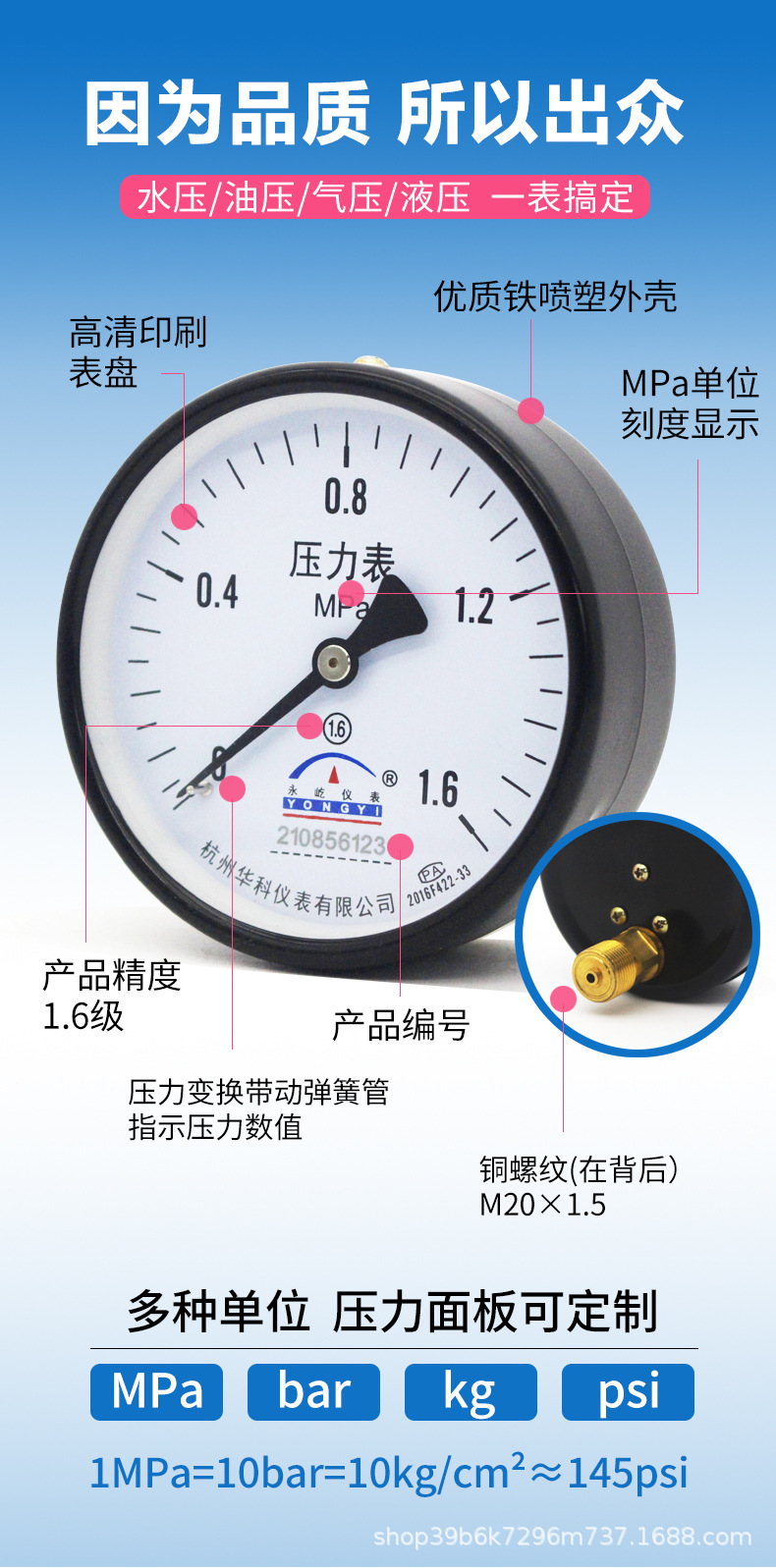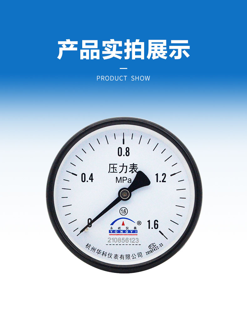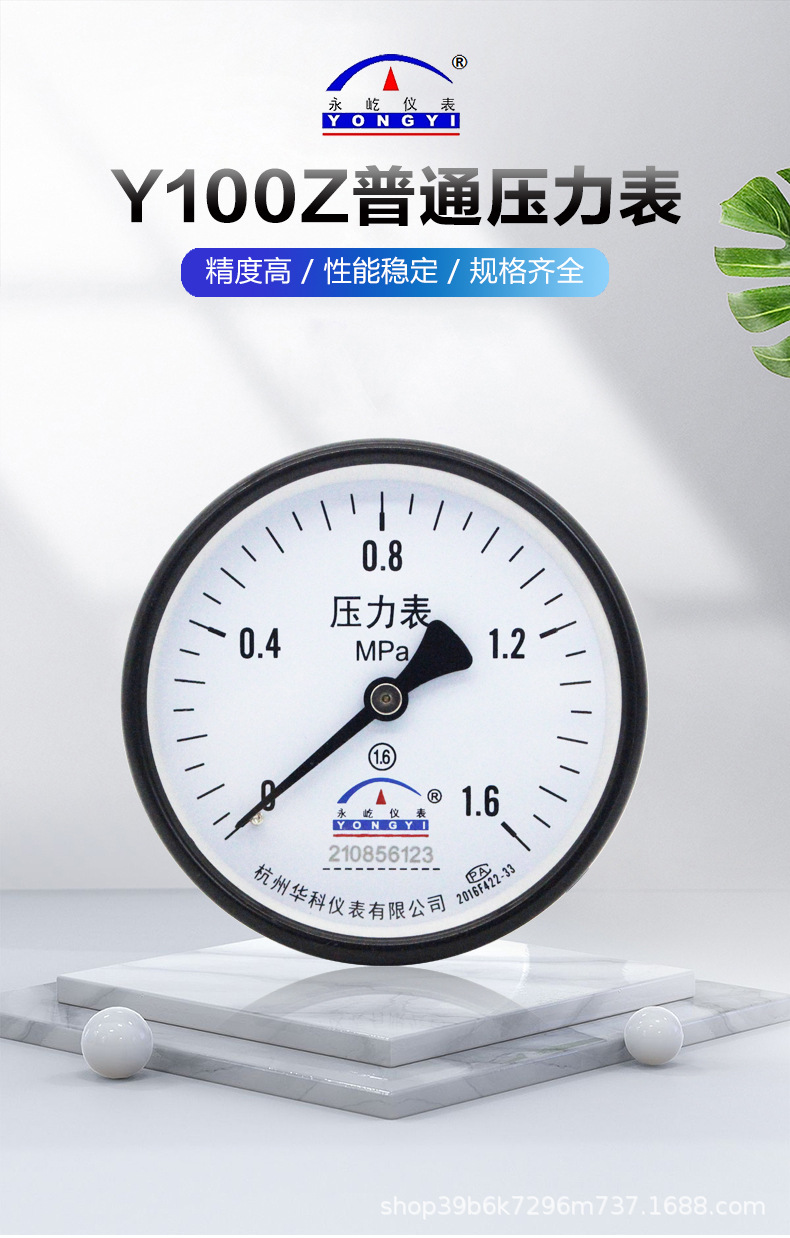 - Wide Compatibility: Y100Z axial pressure gauge compatible with air compressors, hydraulic systems, oil tanks, and water tanks, offering versatile application.