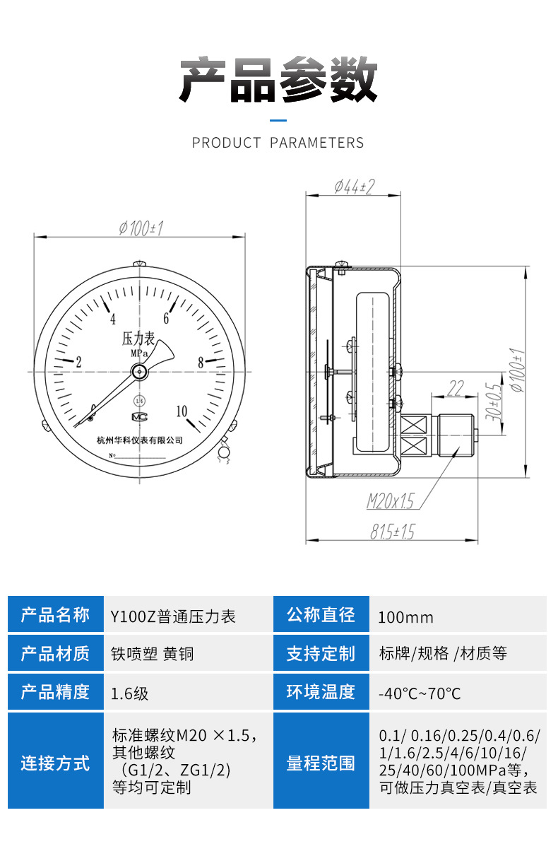 - Key Specs & Performance: Features a 0-1.6MPa measurement range and 1.6 accuracy class for precise pressure monitoring in various industrial settings.