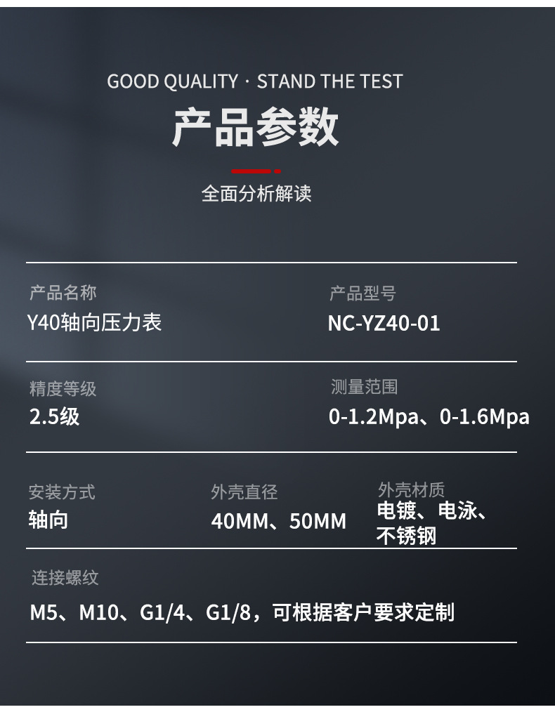 - What You Get: Includes one Y40 axial pressure gauge, available in 40 electroplated, 40 electrophoretic, or 40 O-ring specifications to meet diverse application requirements.