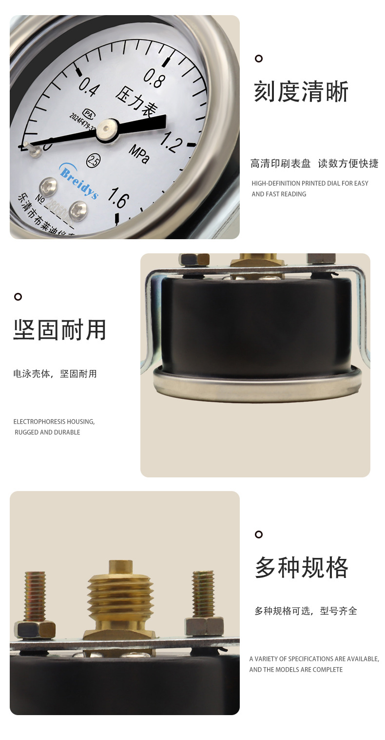 - Wide Compatibility: Breidys Y-50ZV axial pressure gauge is suitable for measuring air, oil, and water pressure across various systems, making it a versatile choice for multiple applications.