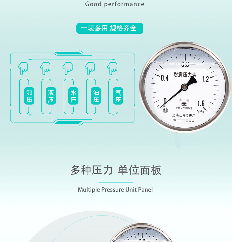 - What You Get: One Shanghai Jiangyue Instrument Factory YN100/Z Axial Pressure Gauge (0-1.6 MPa), providing a dependable and high-quality solution for your pressure monitoring needs.