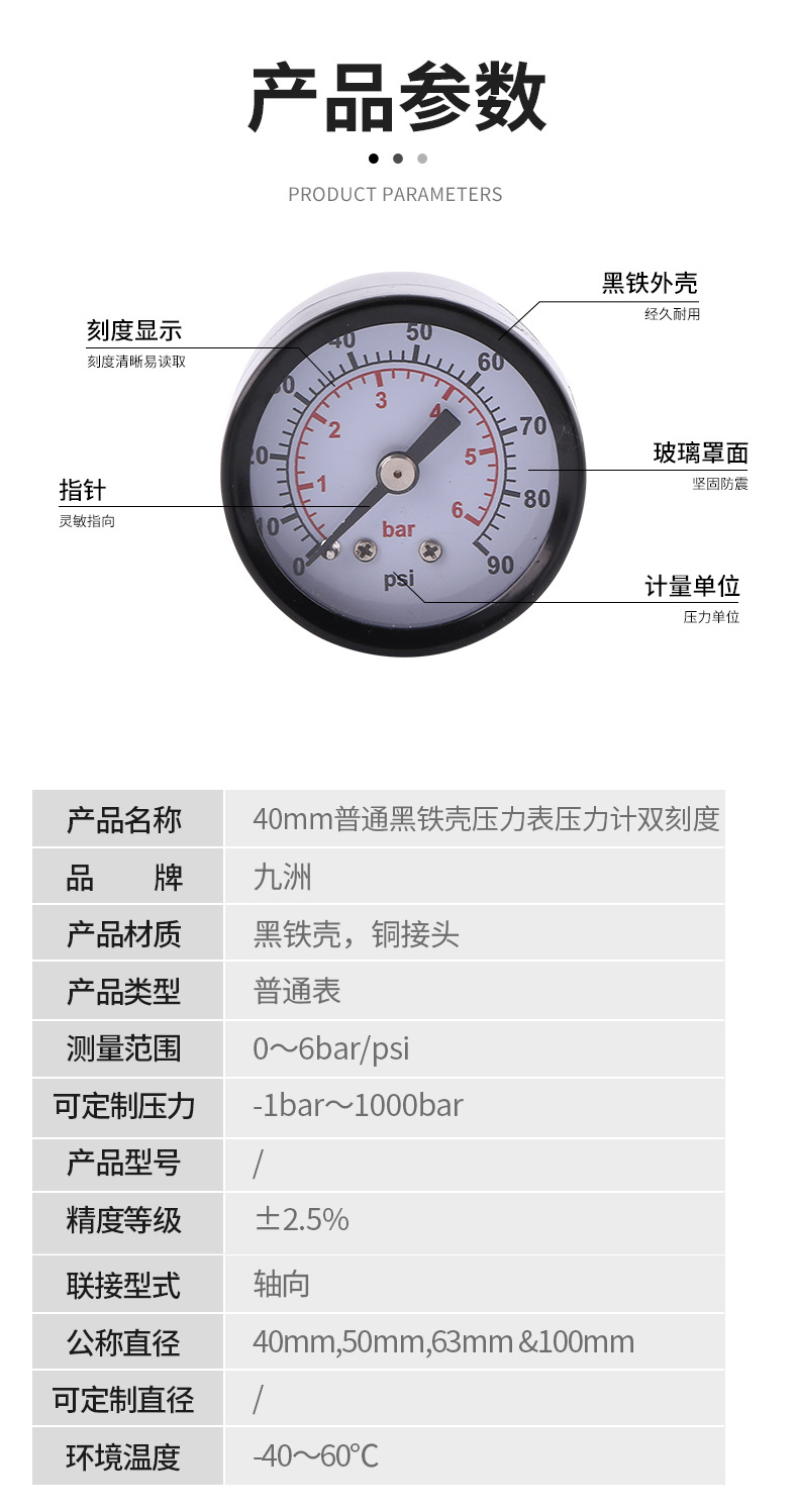 - What You Get: One high-quality 40mm dual scale pressure gauge, offering reliable pressure readings for your specific needs, factory-direct quality with customizable pressure ranges from -1bar to 1000bar.