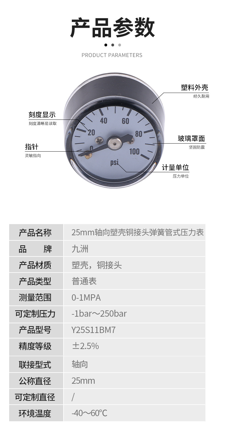 - Key Specs & Performance: With a 25mm nominal diameter and a measurement range of 0-100 psi, ensuring precise pressure readings for optimal system operation.