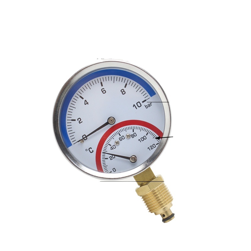 Axial Radial Temperature Pressure Gauge for Underfloor Heating Systems (0-120°C, 0-10 Bar, 50mm) for HVAC Applications