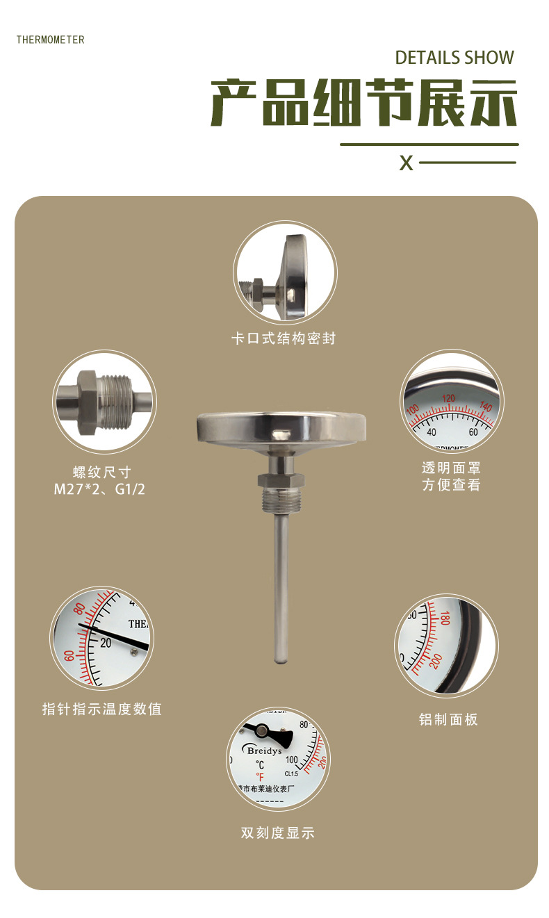 - Key Specs & Performance: Features 1.6级 (Class 1.6) high precision for accurate temperature readings, with a clear 100mm nominal diameter dial for easy readability, making it ideal for precise monitoring.