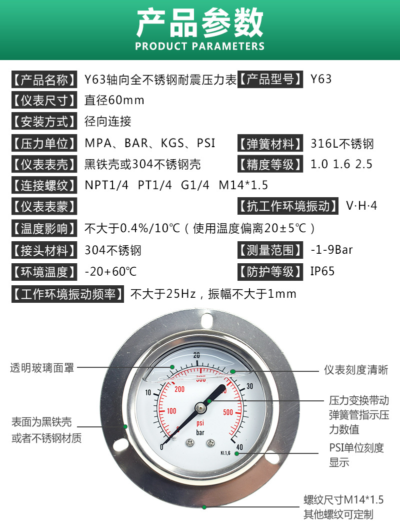 - What You Get: One high-quality axial stainless steel pressure gauge (Y63), produced by a factory committed to quality and customization, offering reliable performance for your measuring needs.