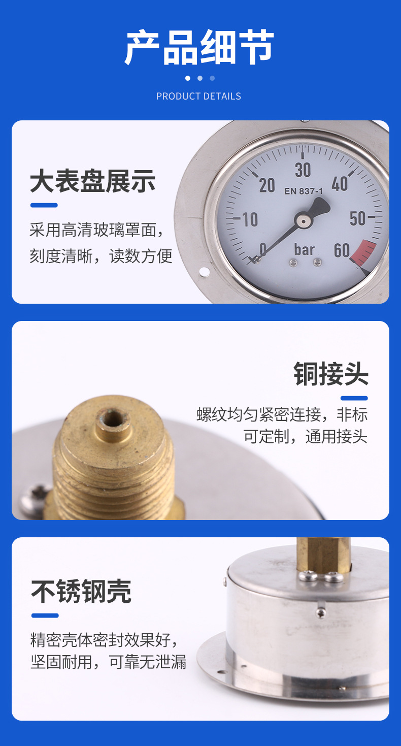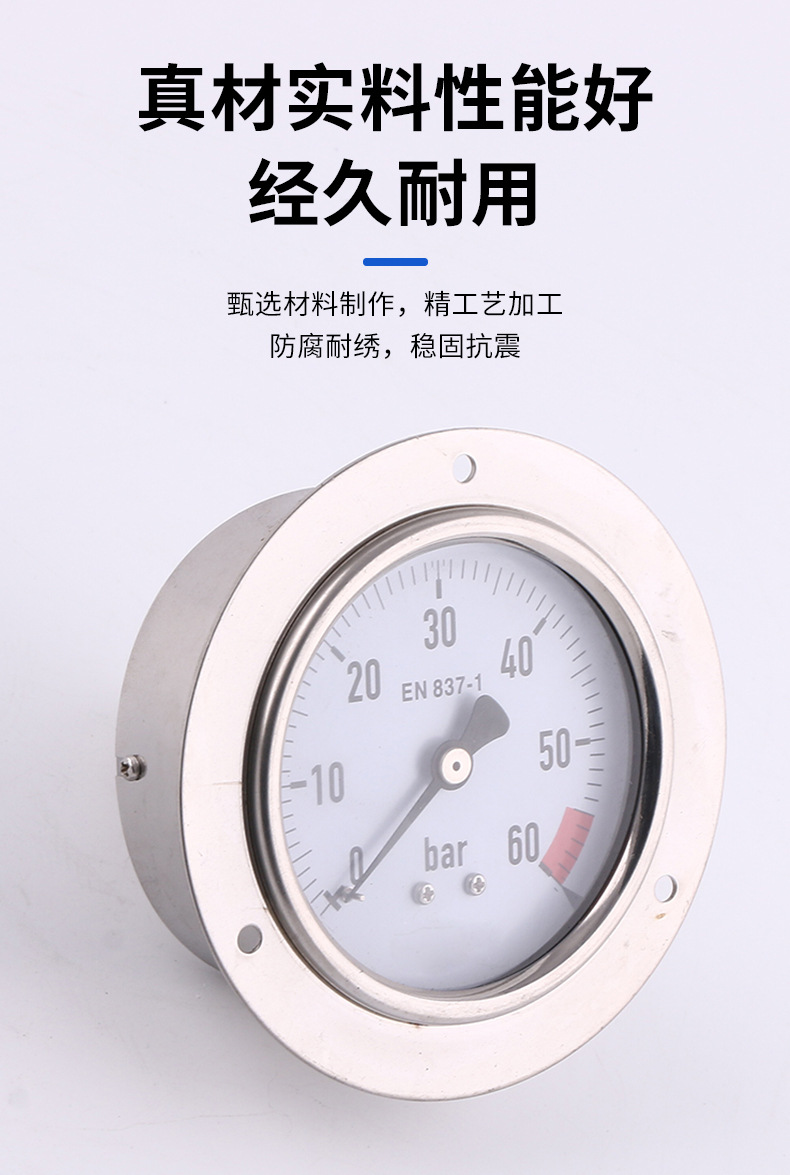 Hongqi Y-60 Pressure Gauge Water Pressure Vacuum Negative Pressure Meter for HVAC Firefighting Tire Pressure