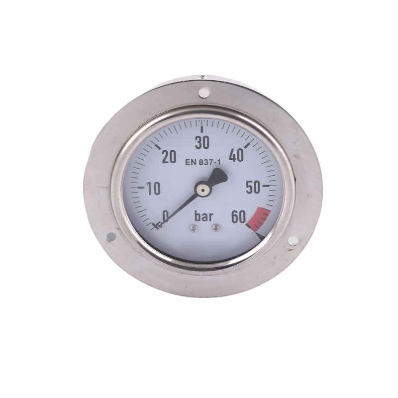 Axial Stainless Steel Pressure Gauge (Y80ZQ) 80mm Dial Diameter with Flange, 0-60 bar Measurement Range, EN 837-1 Rated for HVAC Systems