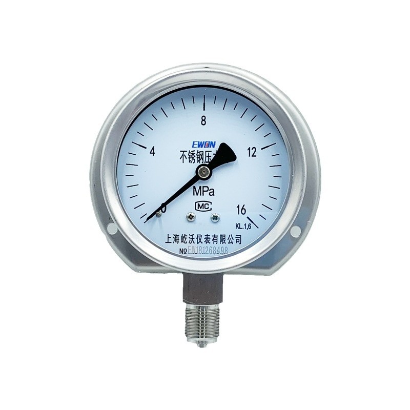 Axial Stainless Steel Pressure Gauge EWON Y100T, 0-16 MPa, 100mm Dial with Rear Mount/Flange for Industrial HVAC Systems