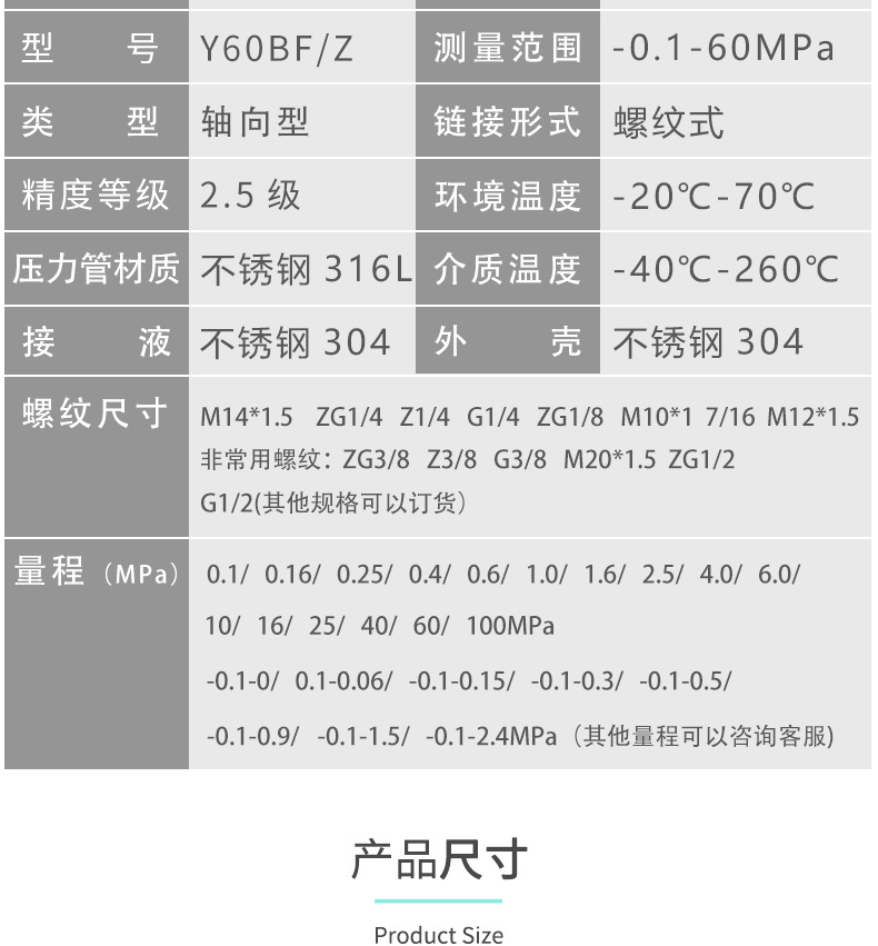 - What You Get: Includes one Y60BF/Z Stainless Steel Axial Pressure Gauge, backed by rigorous quality inspection for reliable purchase.