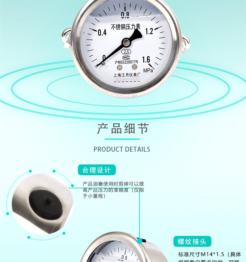 Axial Stainless Steel Pressure Gauge YN60BF/Z with 0-2.5 MPa Range, Bayonet Connection, Anti-vibration for Industrial HVAC Systems