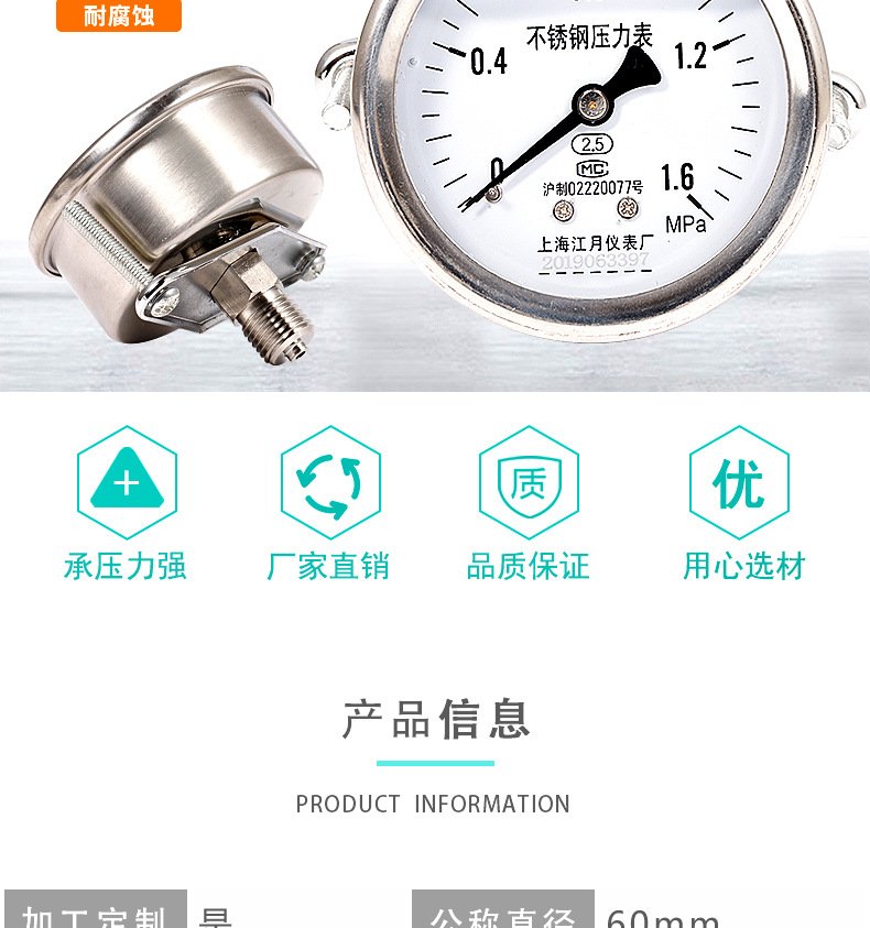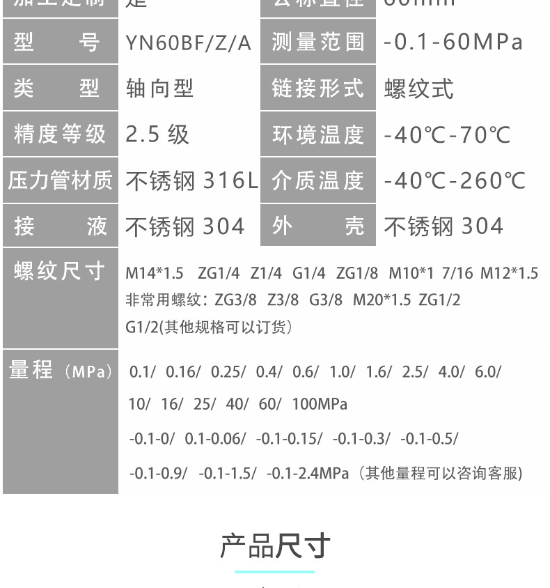 - What You Get: Includes one YN60BF/Z stainless steel pressure gauge, meticulously inspected for quality assurance, providing a dependable solution for your pressure measurement needs.