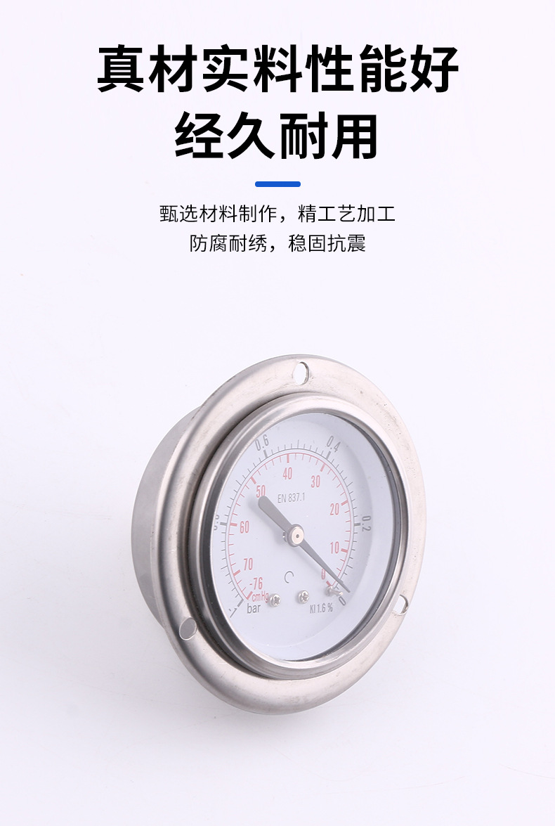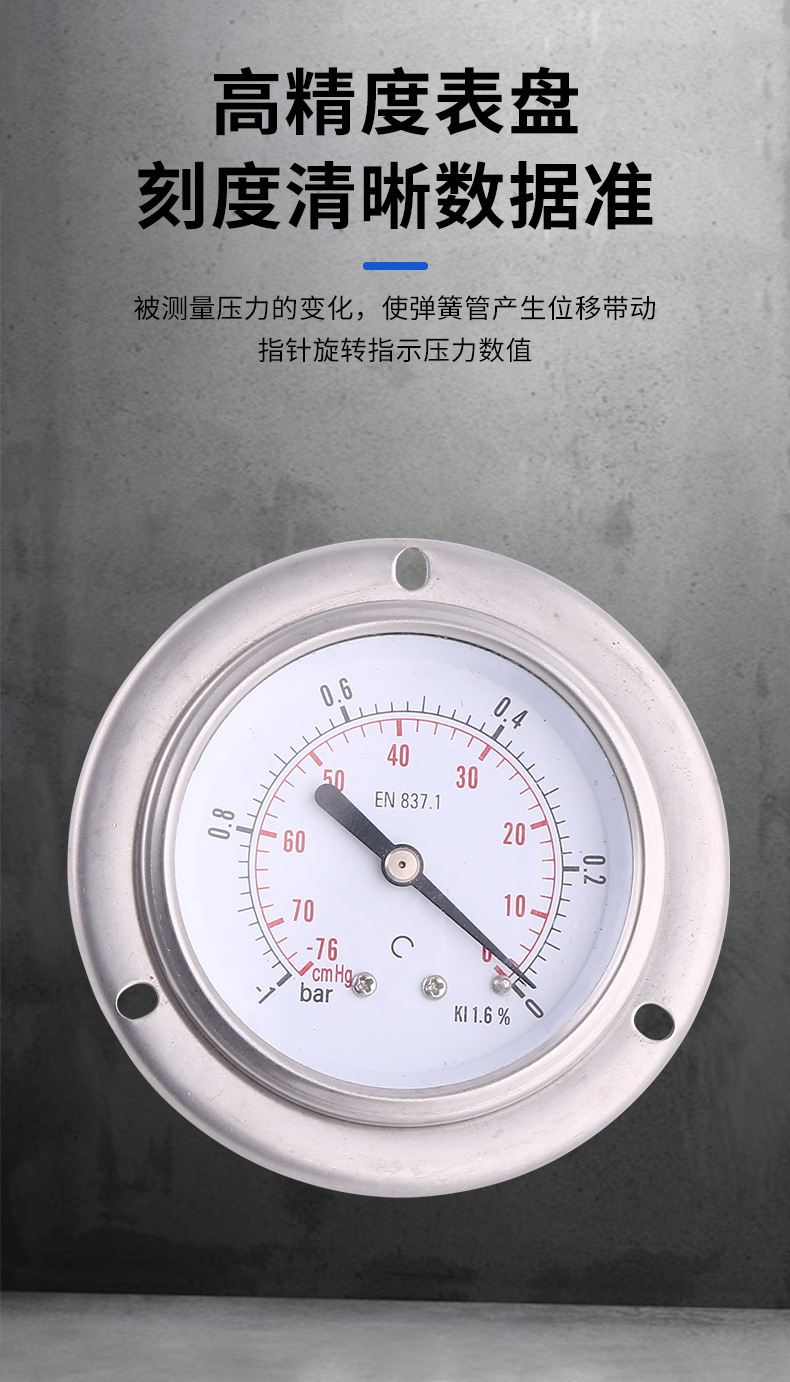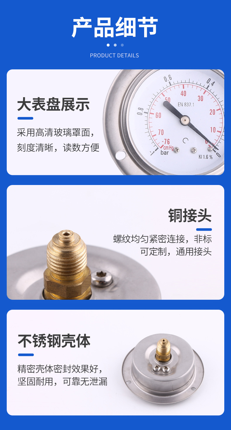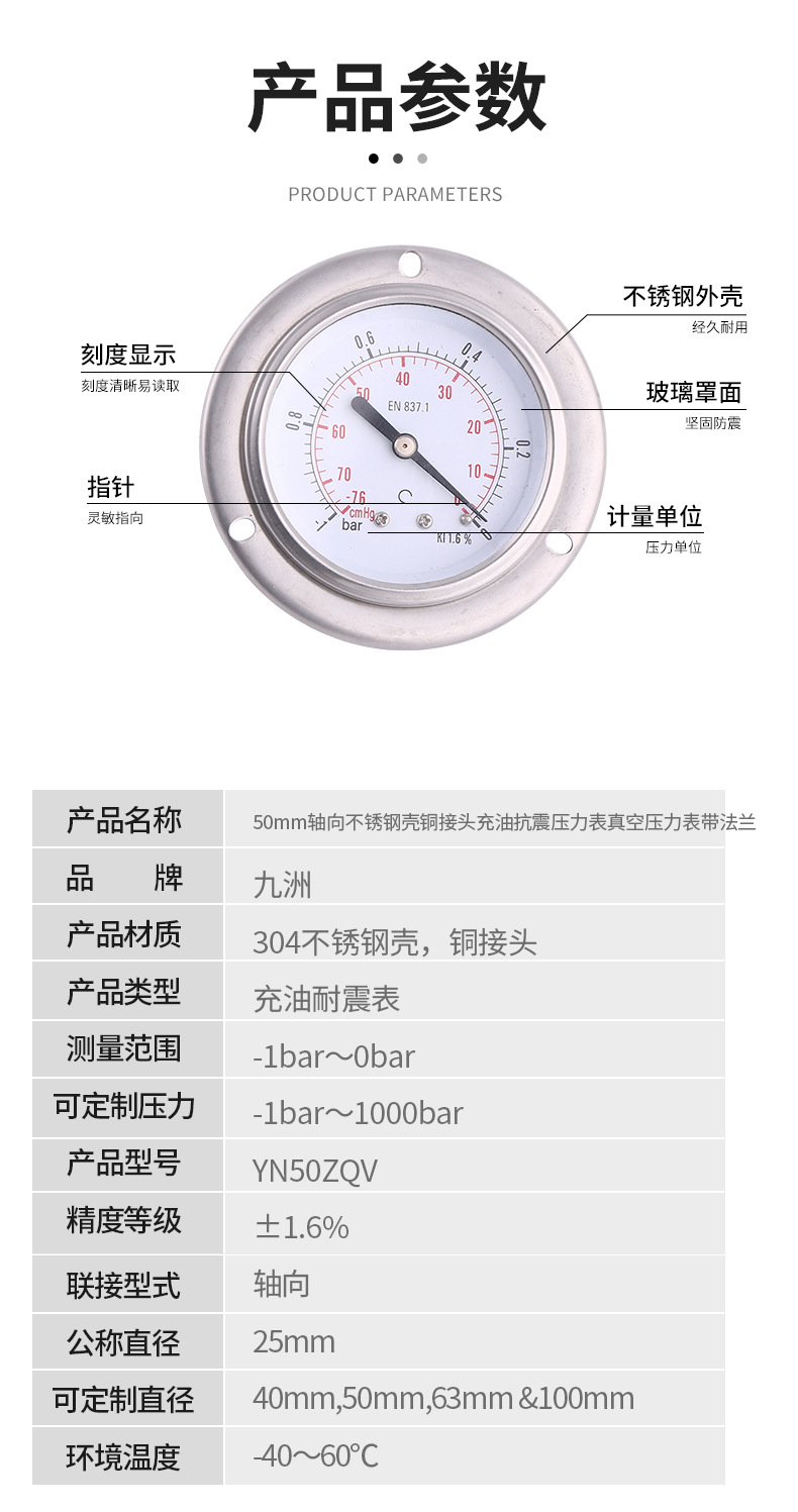 Axial Stainless Steel Pressure Gauge with Copper Joint Oil-Filled Anti-Vibration Vacuum Gauge for HVAC Systems YN50ZQV