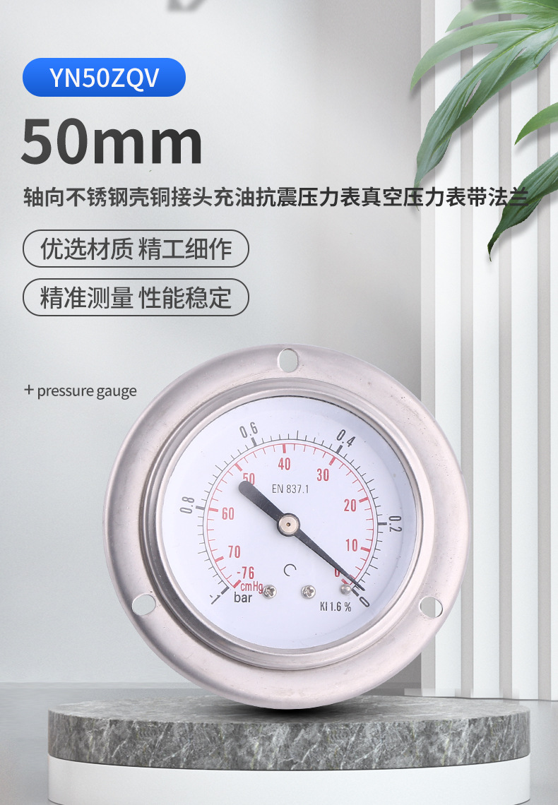 - What You Get: One 50mm Axial Stainless Steel Pressure Gauge (Model YN50ZQV) with oil-filled anti-vibration feature. Backed by our commitment to quality, ensuring peace of mind with your purchase.