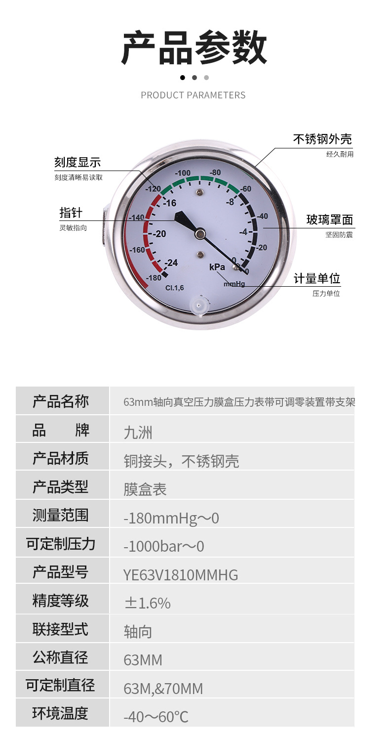 - What You Get: Includes one 63mm Axial Vacuum Pressure Gauge with adjustable zero device and bracket, providing all necessary components for immediate use upon arrival.