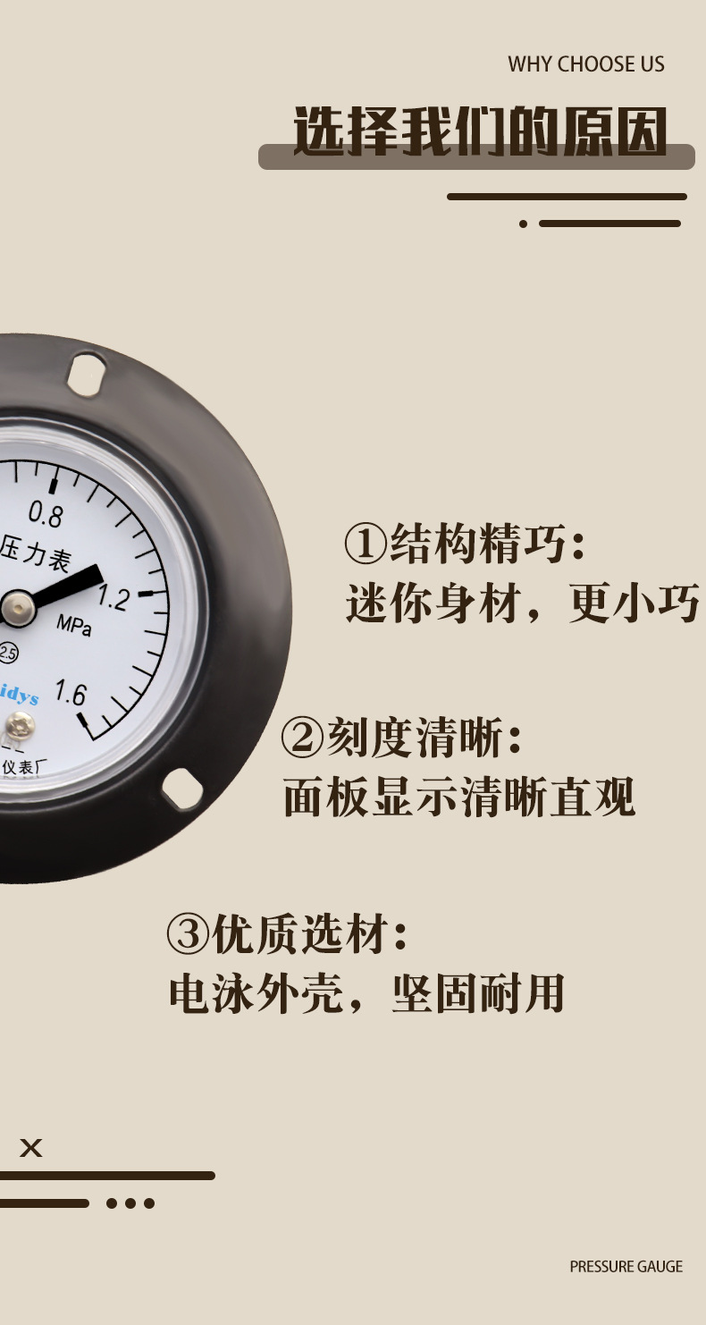 - Easy Installation: Equipped with a standard threaded connection, the Y50ZT pressure gauge ensures quick and straightforward installation, facilitating hassle-free setup and replacement.