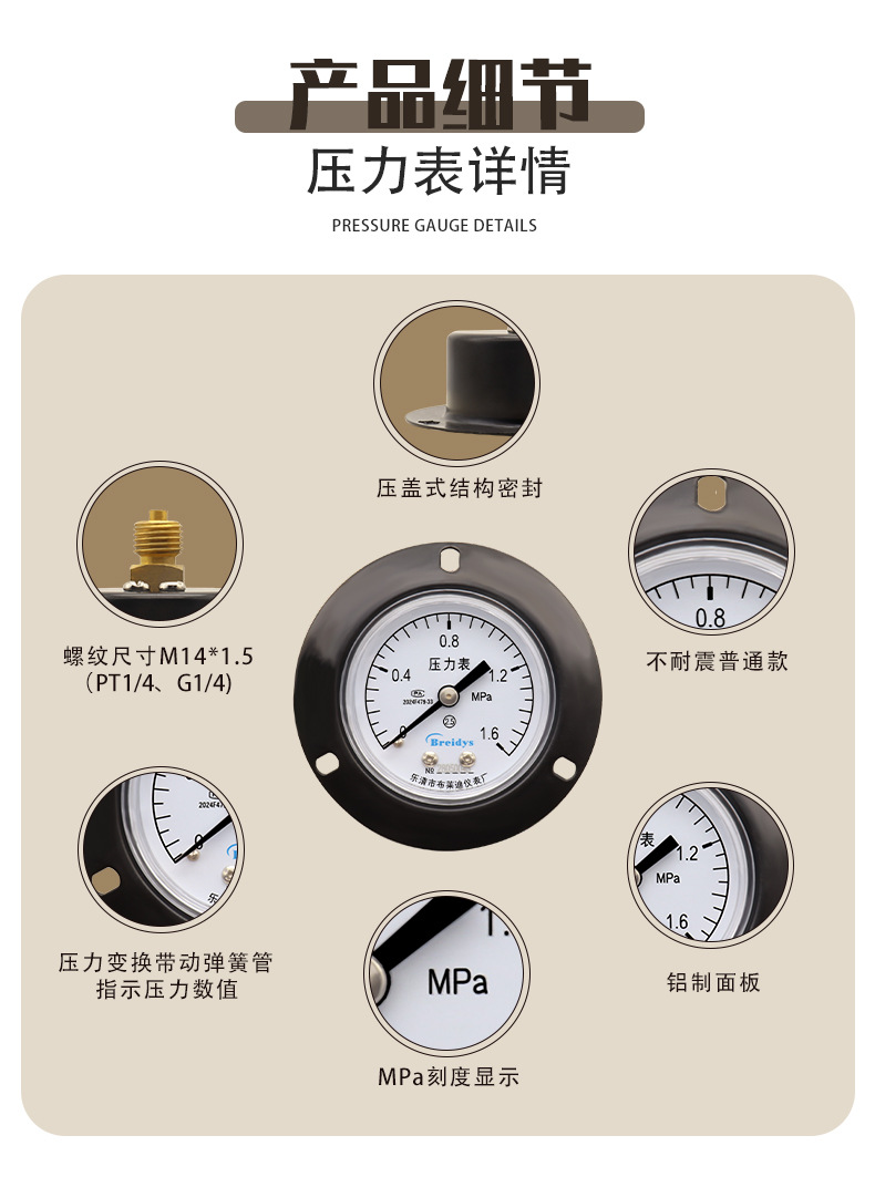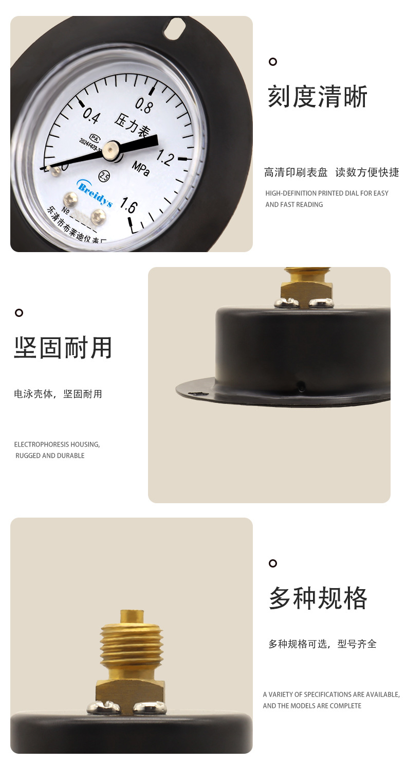 BREIDY Y50ZT Axial Pressure Gauge 0-1.6MPa (Standard) for Oil, Hydraulic, Air, Water Pressure Systems