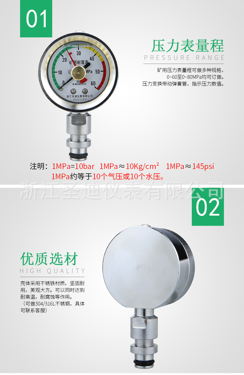 Mining Pressure Gauge Dual-Needle Shockproof (60mm Diameter, 80MPa) for Underground Coal Mining