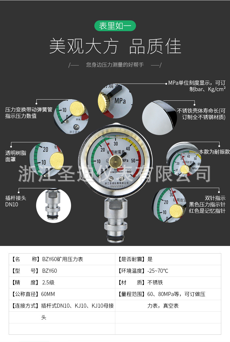 - Wide Compatibility: Specifically designed as the BZY60 mining pressure gauge, ideal for hydraulic support systems and suitable for various mining applications.