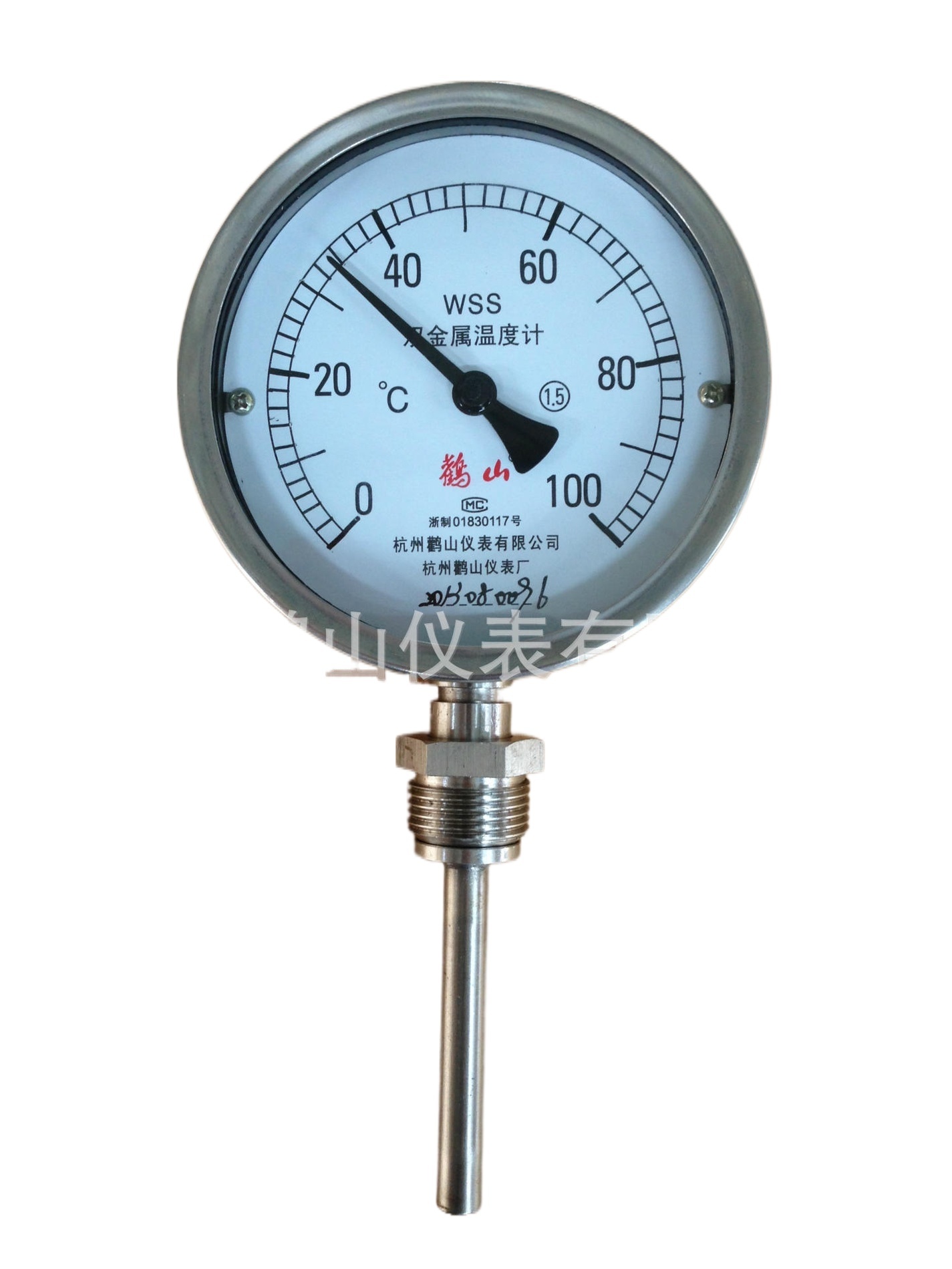 Bi-metallic Temperature Gauge WSS411P (0-100℃, 100mm Dial, 1.5 Accuracy, SS304) for Industrial HVAC