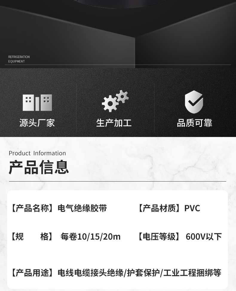 Black PVC Electrical Insulation Tape (600V Max) for HVAC Wiring & Electrical Circuit Protection