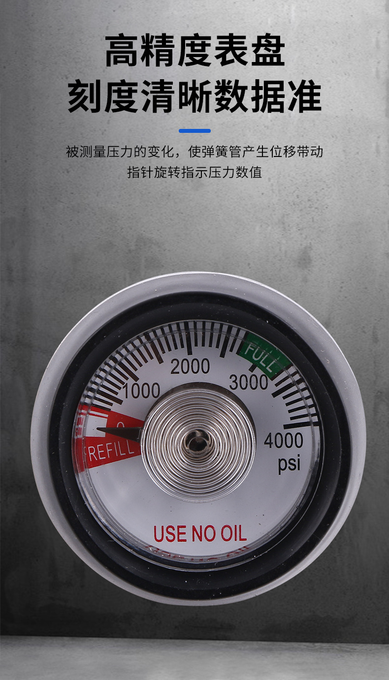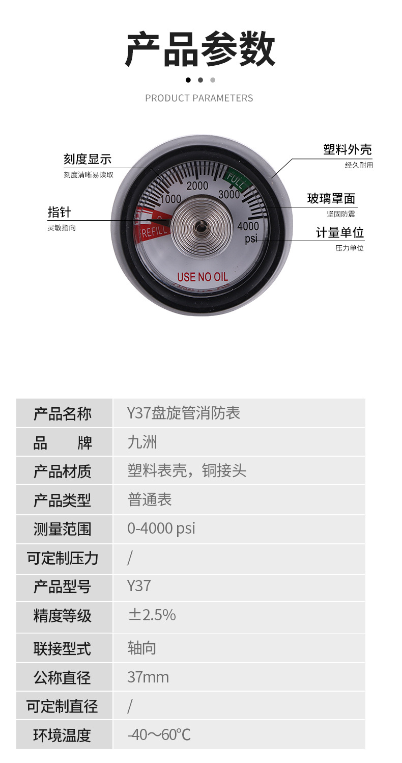 Bourdon Tube Pressure Gauge (0-4000 psi, 37mm, Axial) for Fire Extinguishing Systems