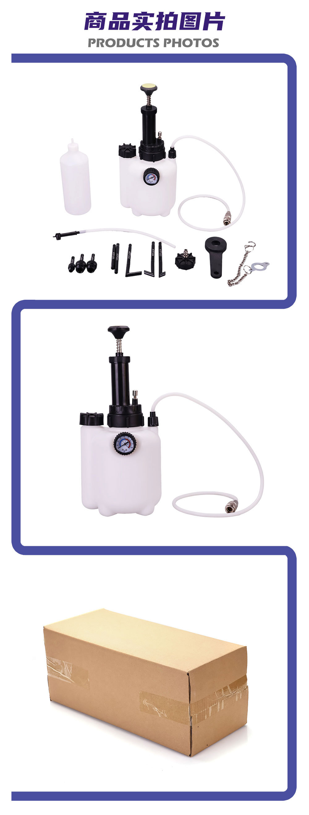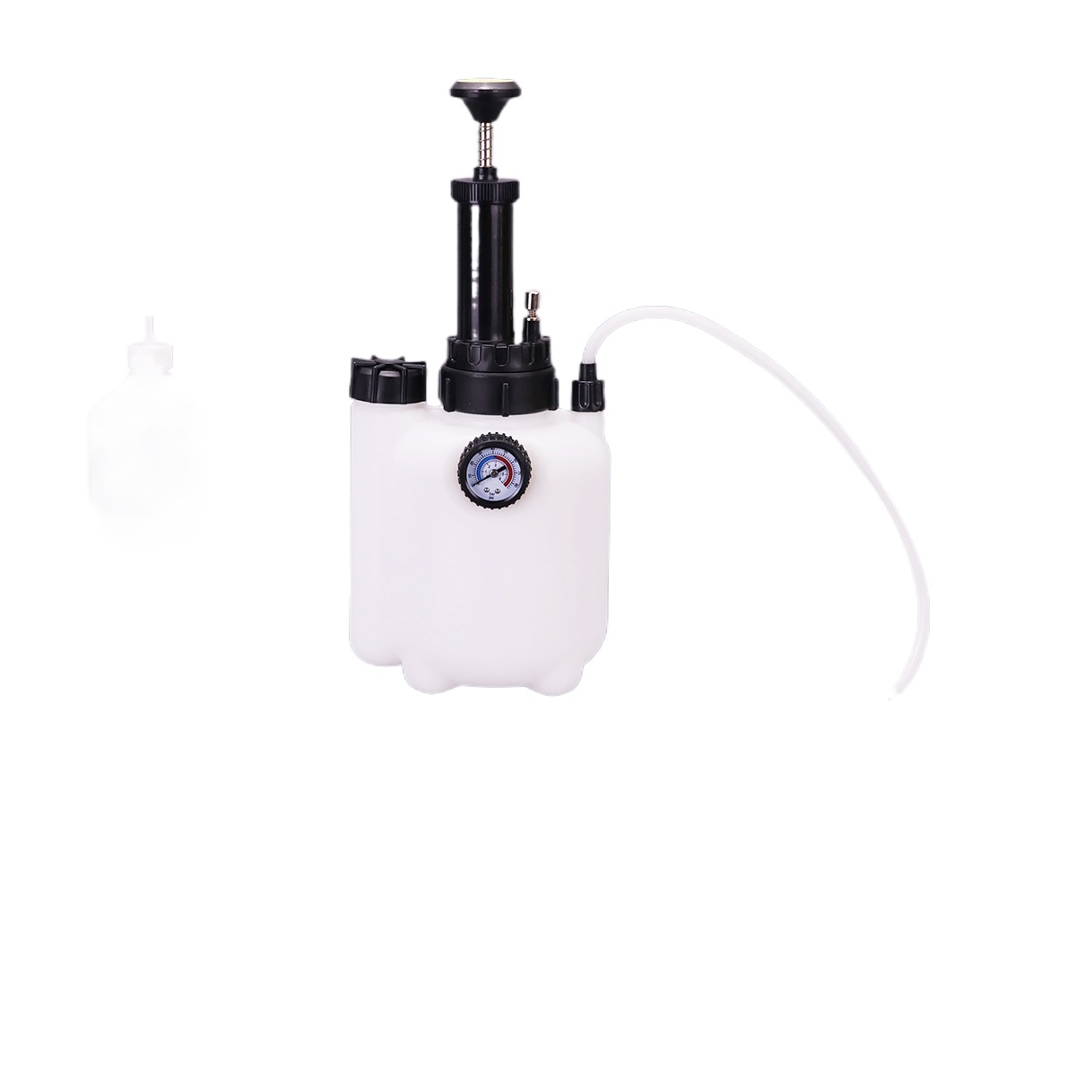 - What You Get: Includes the main fluid reservoir unit with pump, pressure gauge, waste oil bottle, various connectors and adapters, offering a complete solution for brake and transmission oil changes.
