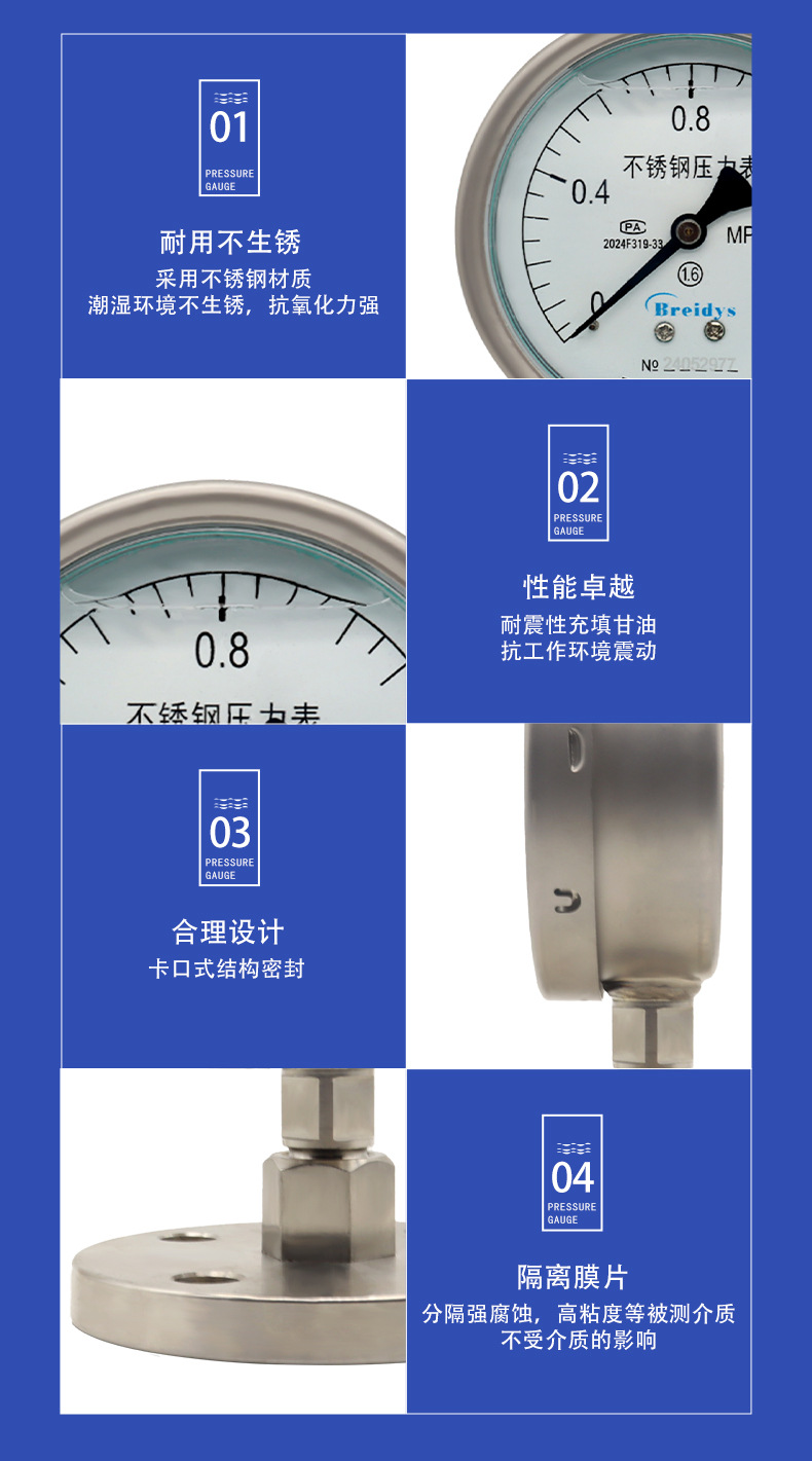 - Key Specs & Performance: Features a 0-1.6 MPa measurement range with a 1.6 accuracy class, providing reliable and precise pressure readings for critical processes, suitable for a wide range of media.