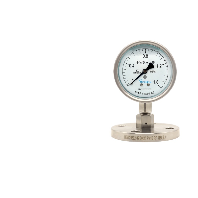- Compatibility: Breidys YTP-100MF Diaphragm Pressure Gauge with DN25 PN16 RF 316L flange connection, ideal for industrial applications requiring precise pressure measurement for acidic and alkaline media.