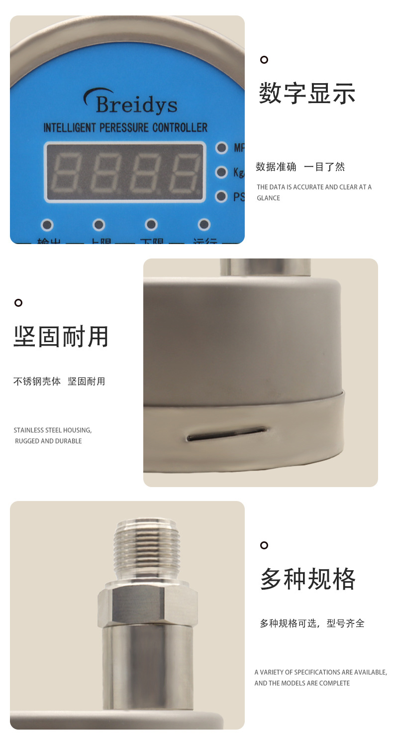 - Wide Compatibility: Breidys YK-101-3 intelligent digital pressure controller is suitable for various applications, including boiler and fire protection systems, offering high precision measurement ranges from 0 to 60Mpa.