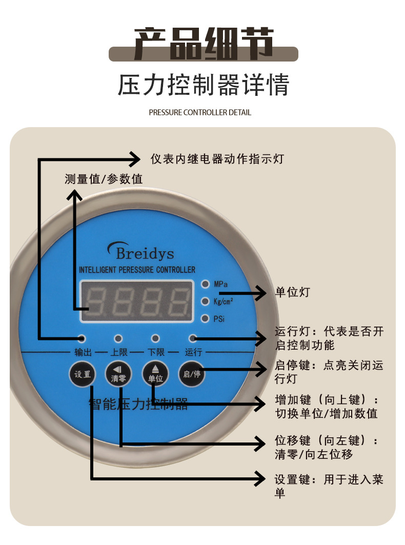 Breidys YK-101-3 Intelligent Digital Pressure Controller (0-60Mpa, Multiple Gauge Units)