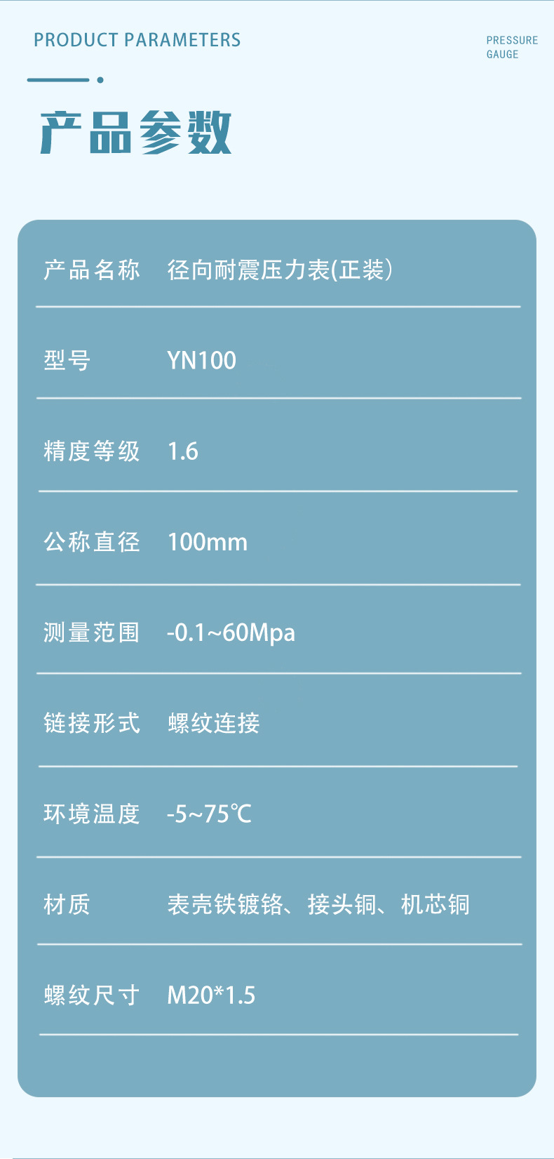 - Key Specs & Performance: YN100 model with a precise 0-1.6 MPa measurement range and 1.6 accuracy class, providing highly reliable and accurate readings essential for critical operations. Nominal diameter of 100mm.