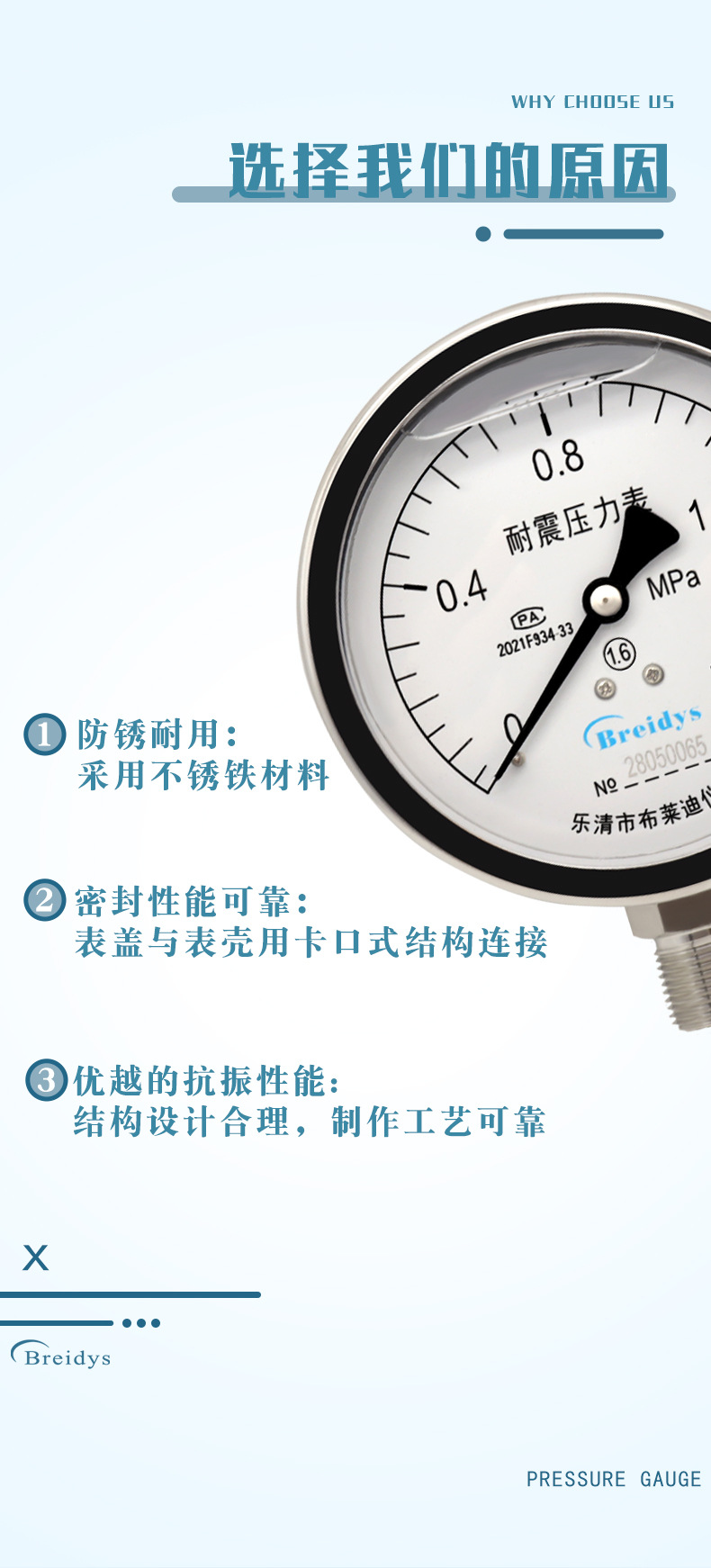 - What You Get: One Breidys YN100 pressure gauge with specified measuring range, offering high accuracy for industrial and commercial applications.