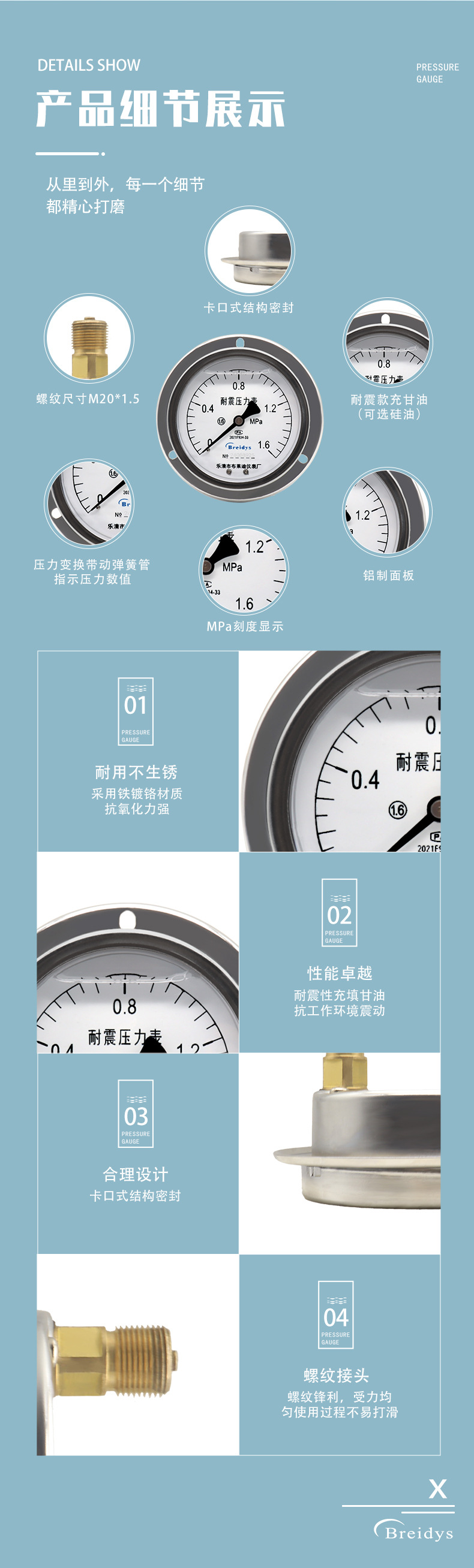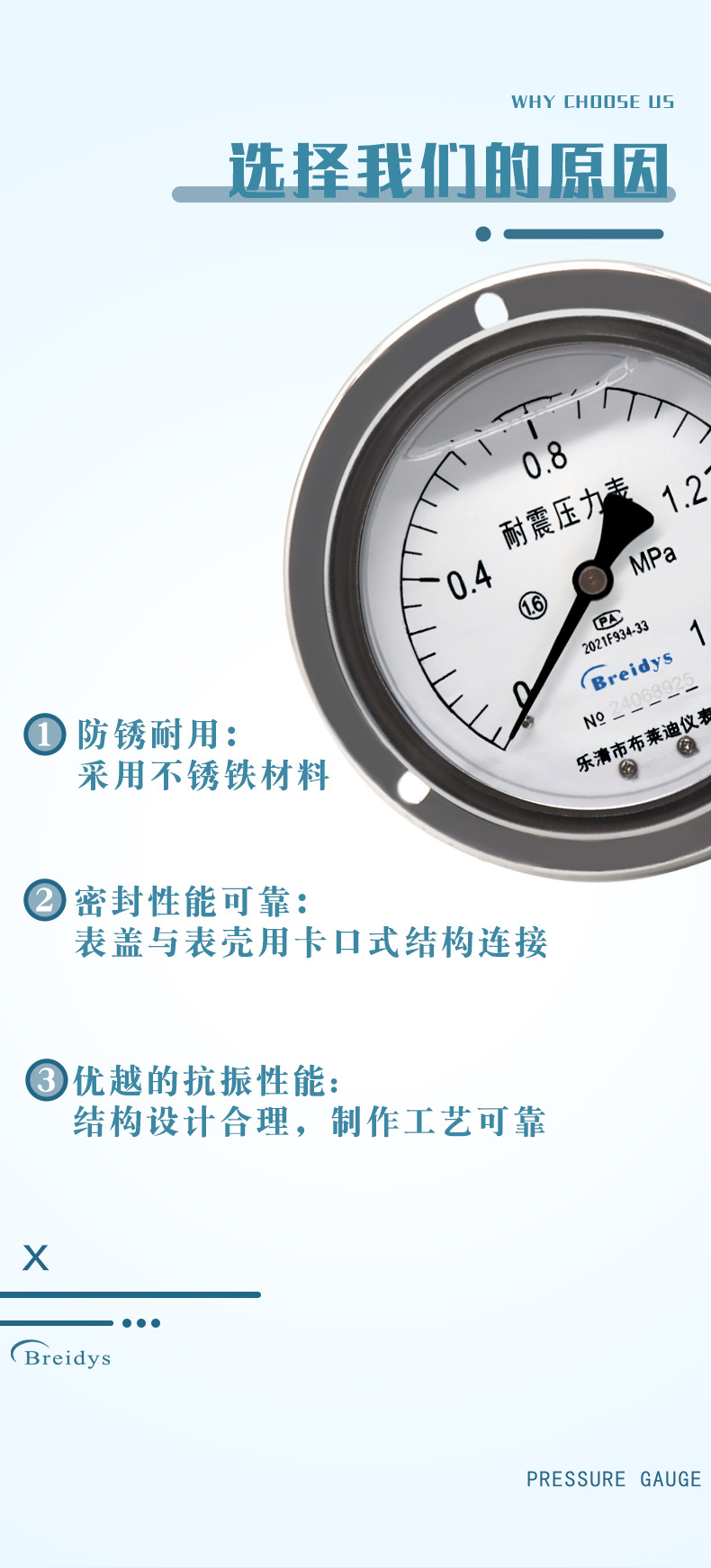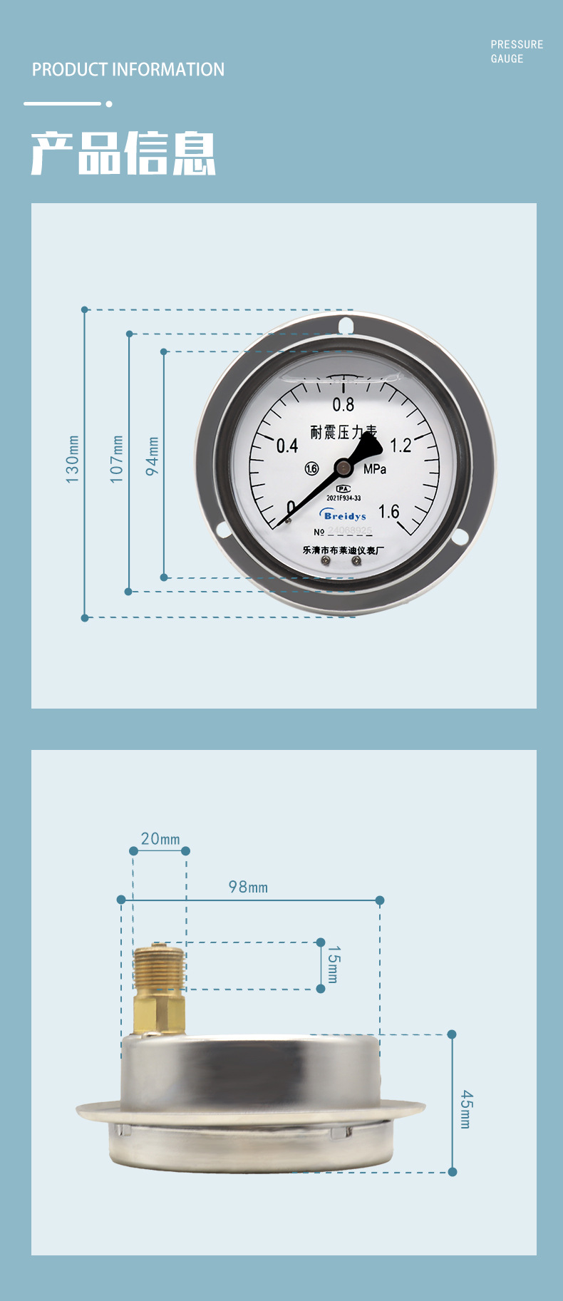 - Wide Compatibility: Specifically designed as a direct replacement for Breidys YN100ZT series pressure gauges, compatible with various air, water, hydraulic, and vacuum systems.
