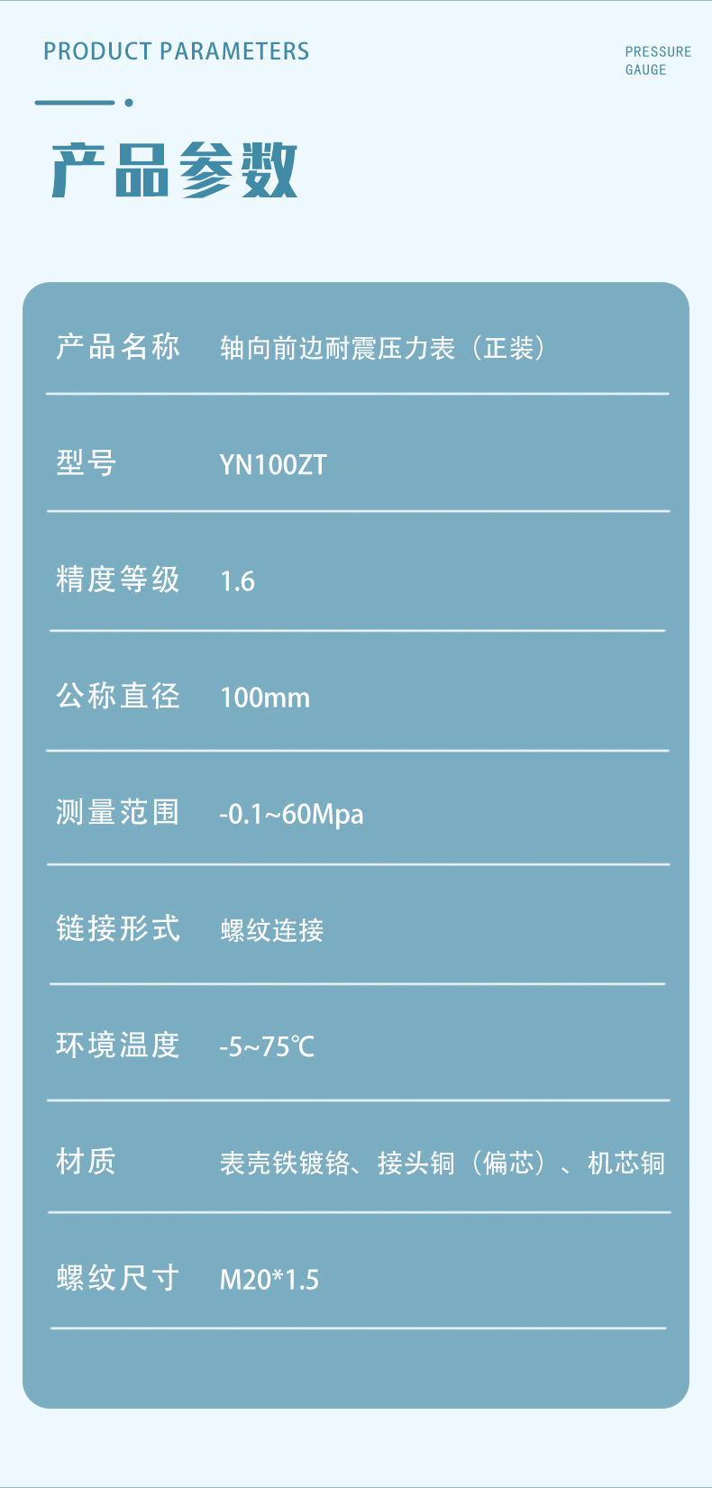 - What You Get: One Breidys YN100ZT Axial Pressure Gauge. Backed by quality assurance and a product designed for reliable, long-term performance.