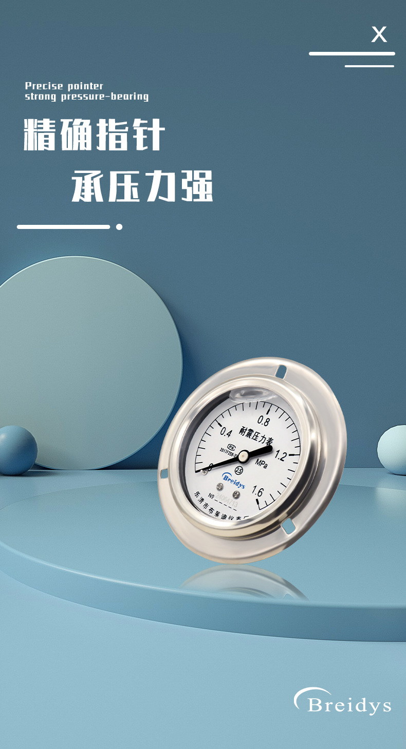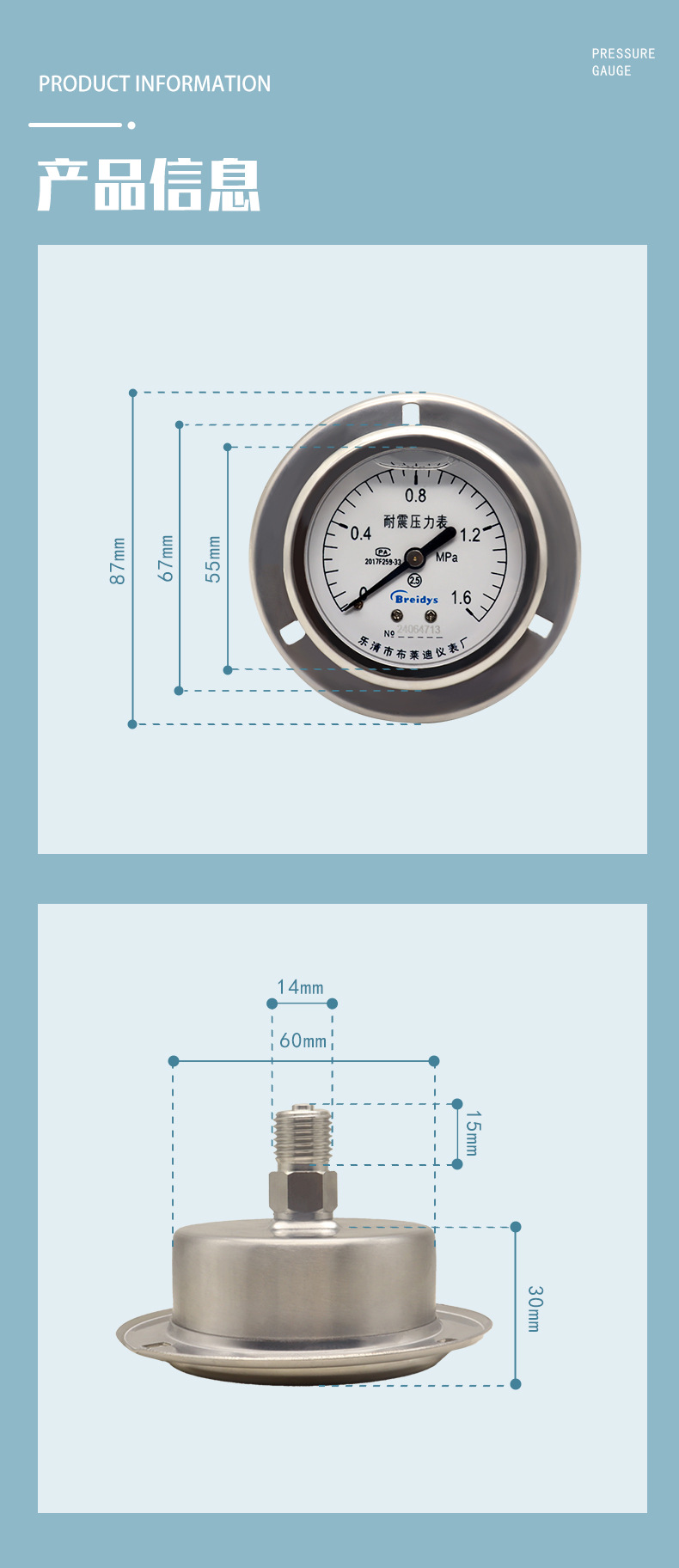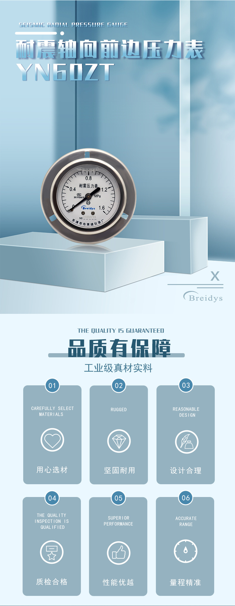 Breidys YN60ZT Axial Pressure Gauge (0-1.6MPa, 60mm Dial, Shake-proof) for HVAC Systems, Replaces Breidys YN60ZT