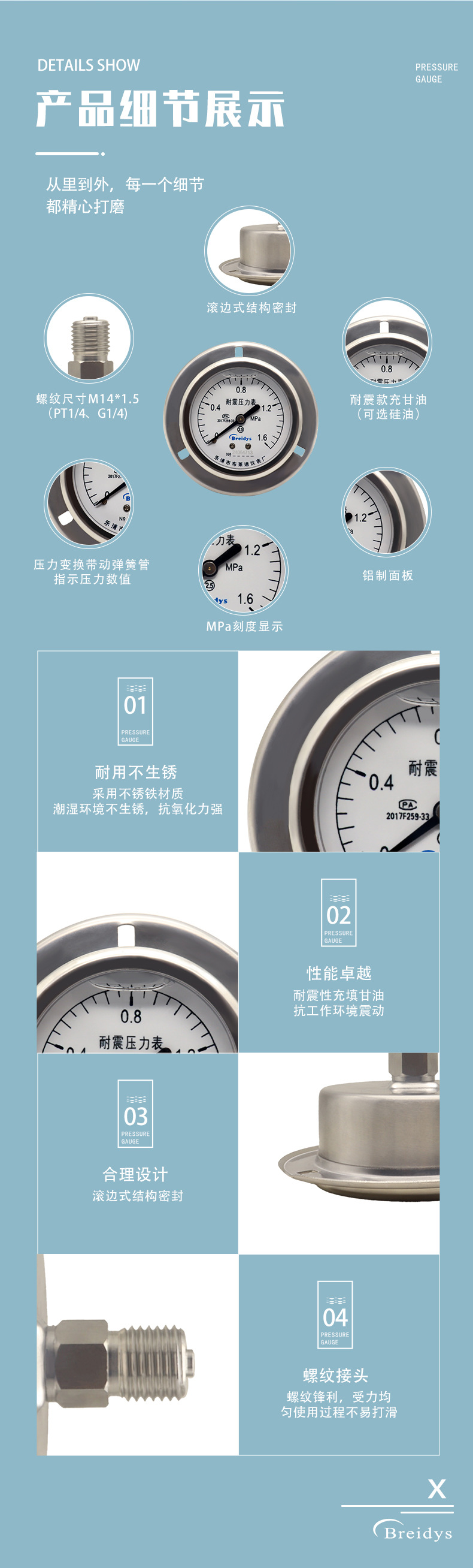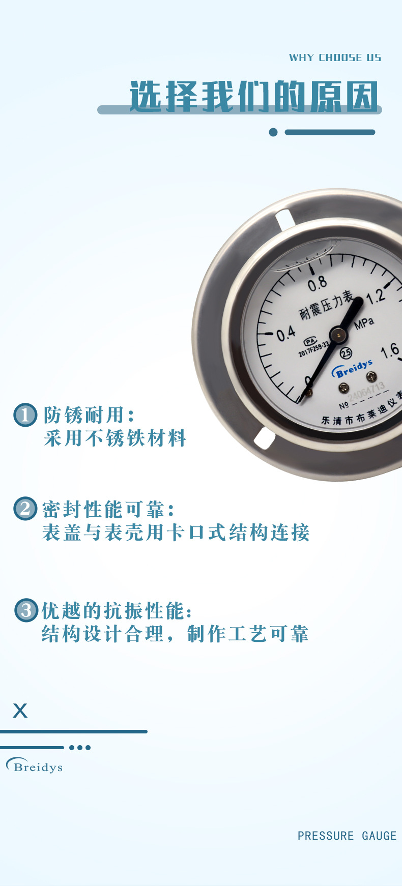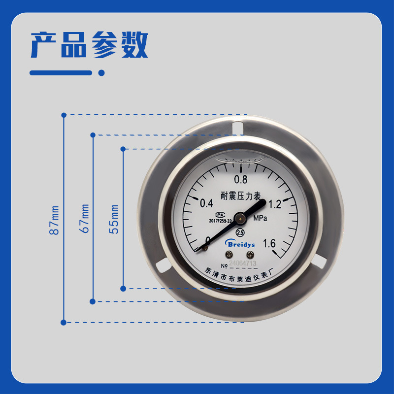 Breidys YN60ZT Axial Pressure Gauge (0-1.6MPa, 60mm Dial, Shake-proof) for HVAC Systems, Replaces Breidys YN60ZT
