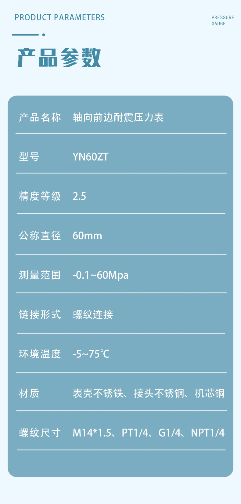 - Key Specs & Performance: This YN60ZT axial pressure gauge offers a precise measuring range of 0-1.6MPa with a 60mm nominal diameter, providing high accuracy for monitoring hydraulic, pneumatic, and water pressure.