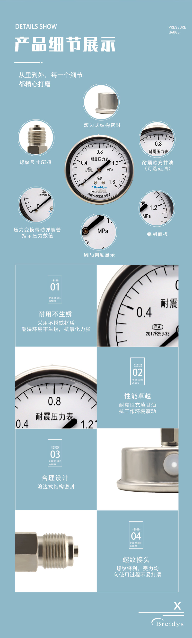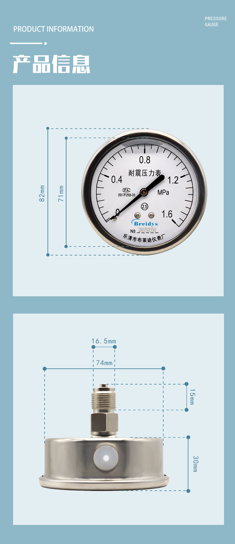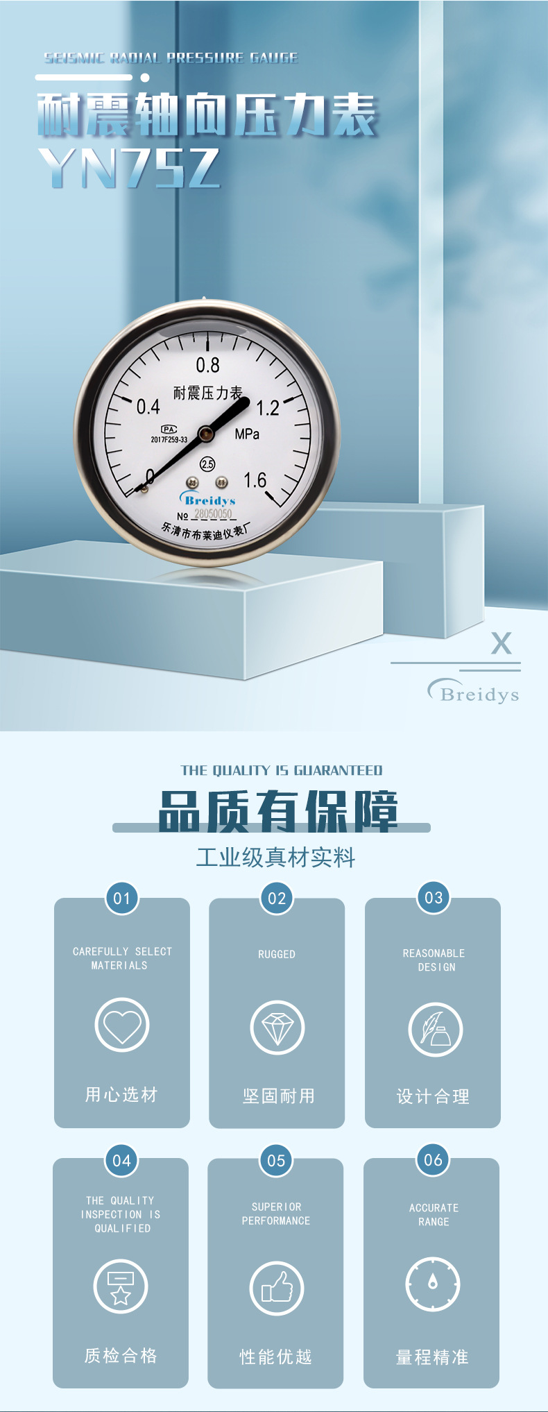 - What You Get: One Breidys YN75Z axial shock-resistant pressure gauge. This high-precision instrument is ideal for various pressure monitoring needs.