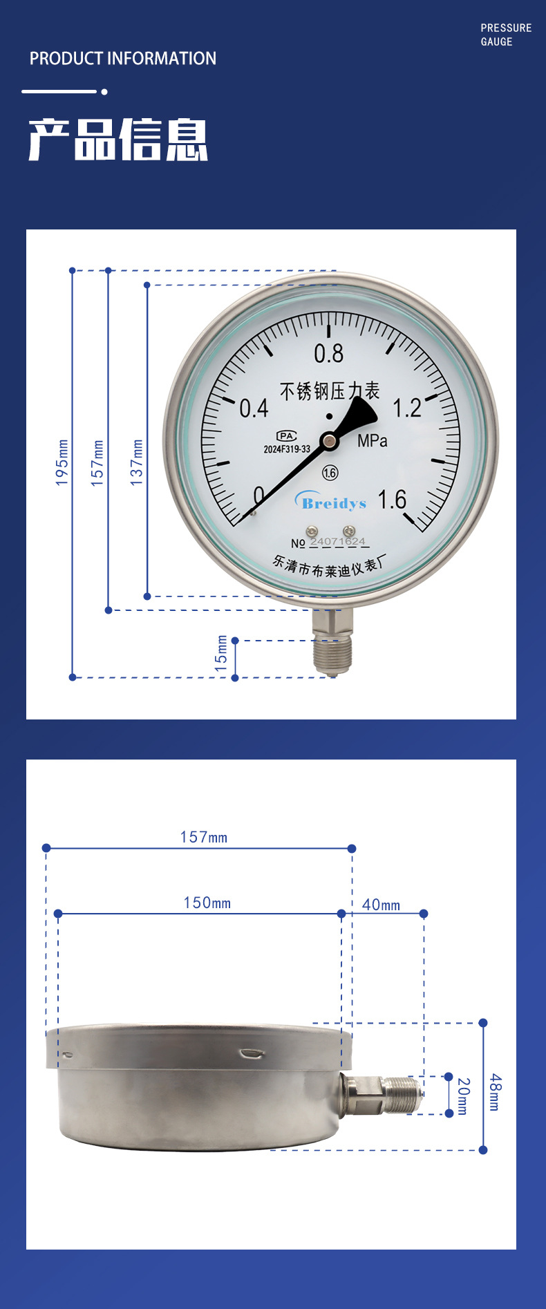 - What You Get: One Breidys YNBF150 Stainless Steel Pressure Gauge, ensuring a direct replacement and reliable performance for your pressure monitoring needs. Purchase with confidence for superior quality.
