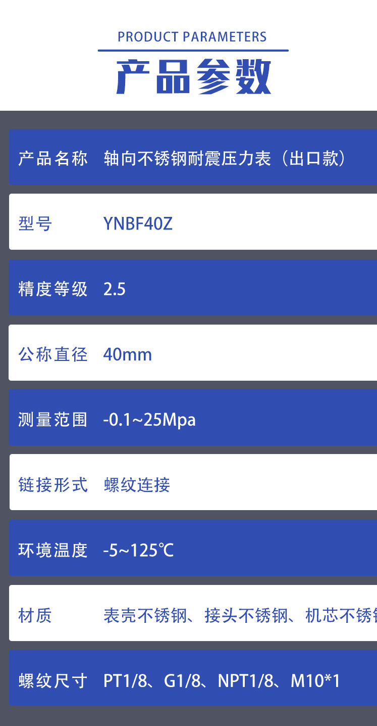 - What You Get: Includes one YNBF40Z axial stainless steel pressure gauge (0-1.6MPa). Customizable specifications are available to meet diverse industry needs, ensuring a perfect fit for your setup.