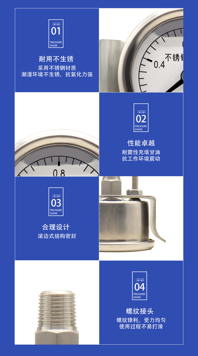 - Precision Measurement: Features a clear 40mm dial with a 0-1.6 MPa measuring range and 2.5 accuracy class, providing reliable and precise pressure readings for critical applications.