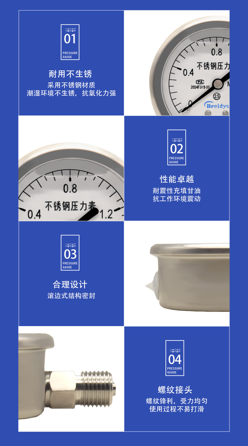 - Complete Package: Includes one Breidys YNBF60 stainless steel pressure gauge, offering a dependable and high-quality solution for your pressure measurement needs.