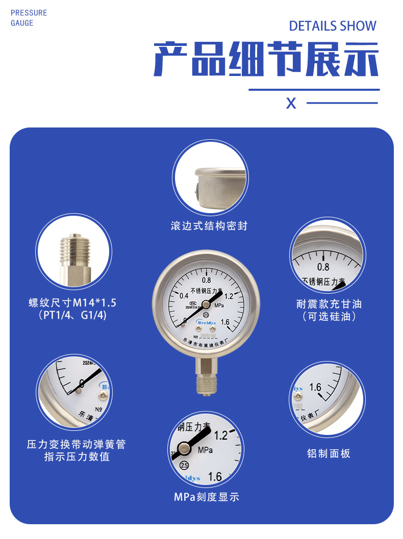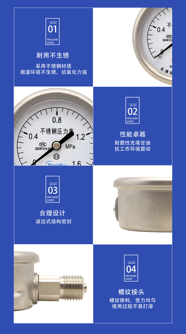 - Wide Compatibility: Breidys YNBF60 integrated stainless steel pressure gauge is ideal for measuring gas and water pressure in various systems, ensuring broad application.