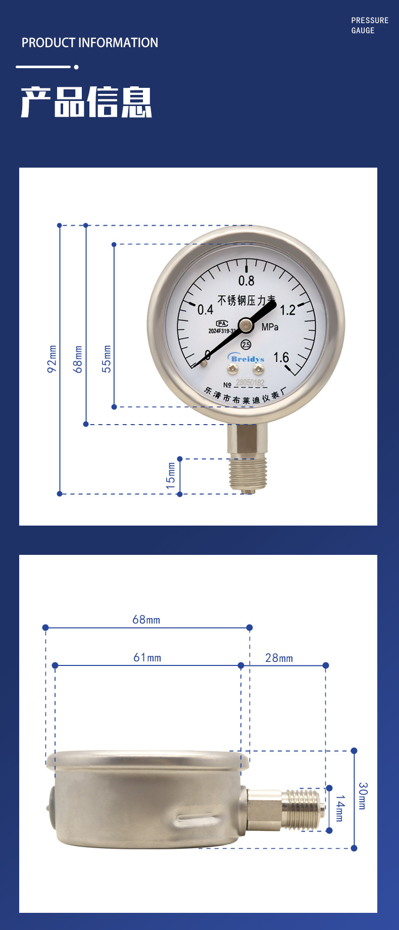 - What You Get: One Breidys YNBF60 stainless steel pressure gauge, ensuring quality assurance and reliable performance for your pressure measurement needs.