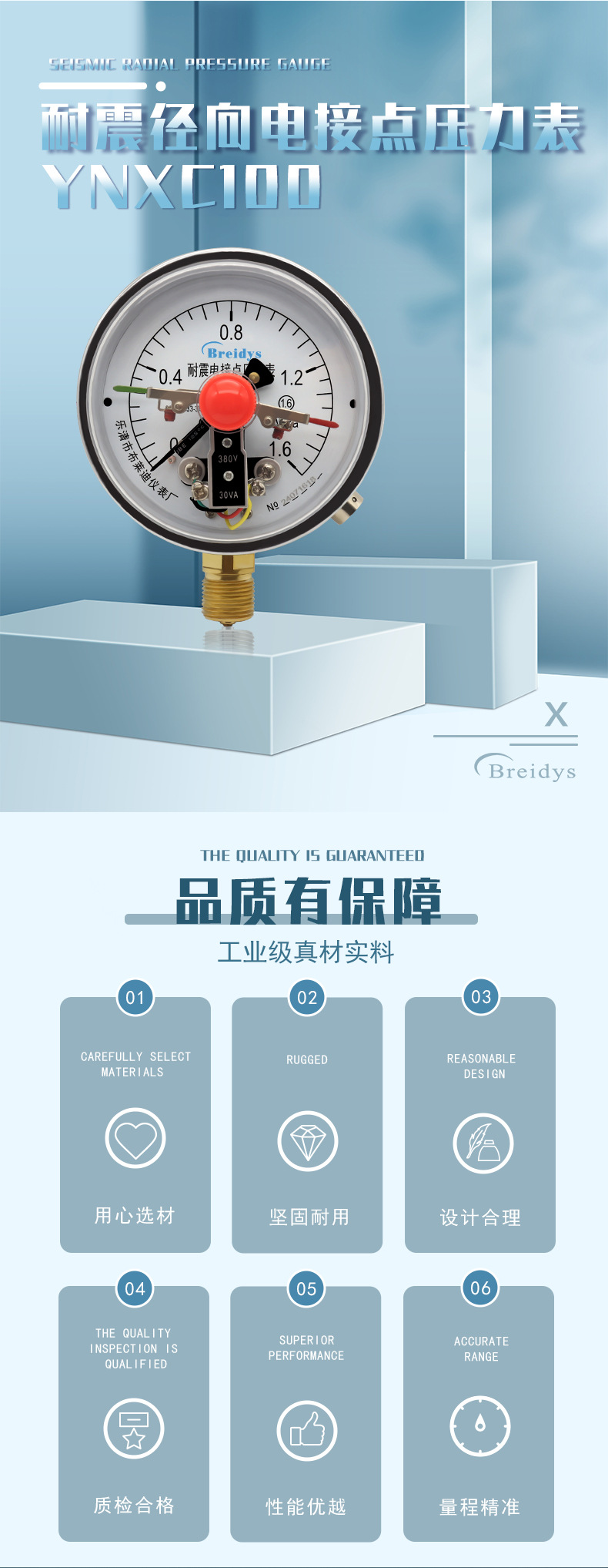 - Wide Compatibility: Breidys YNXC100 model is broadly applicable for various industrial pressure measurement needs, suitable for a range of systems requiring precise pressure monitoring.