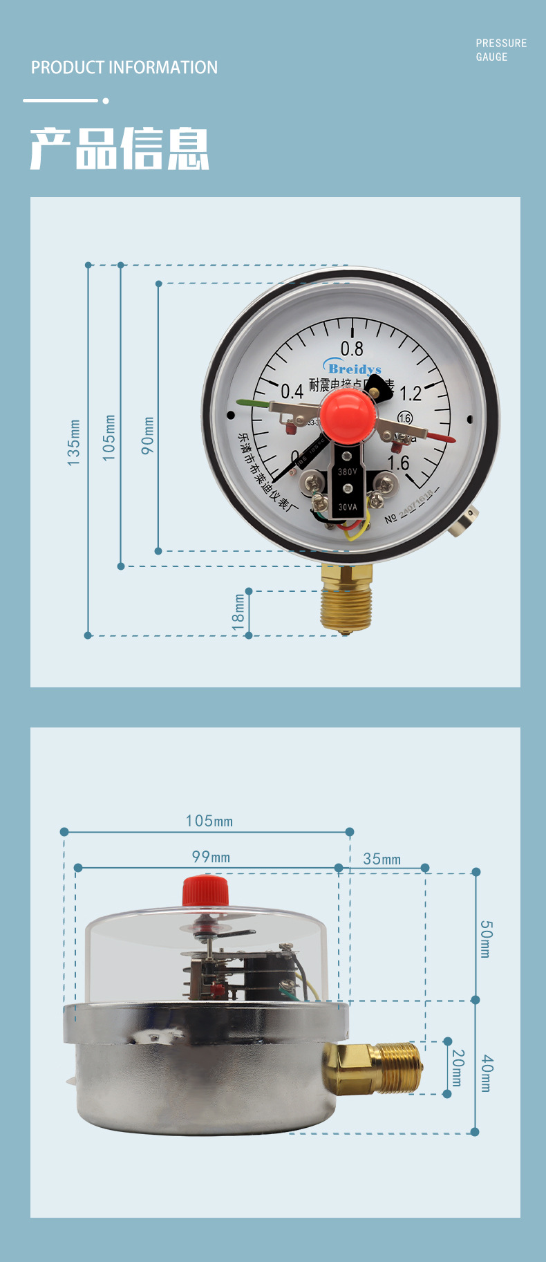 - What You Get: One Breidys YNXC100 electric contact pressure gauge. Backed by factory direct sales ensuring quality assurance and customizable options for specific requirements.