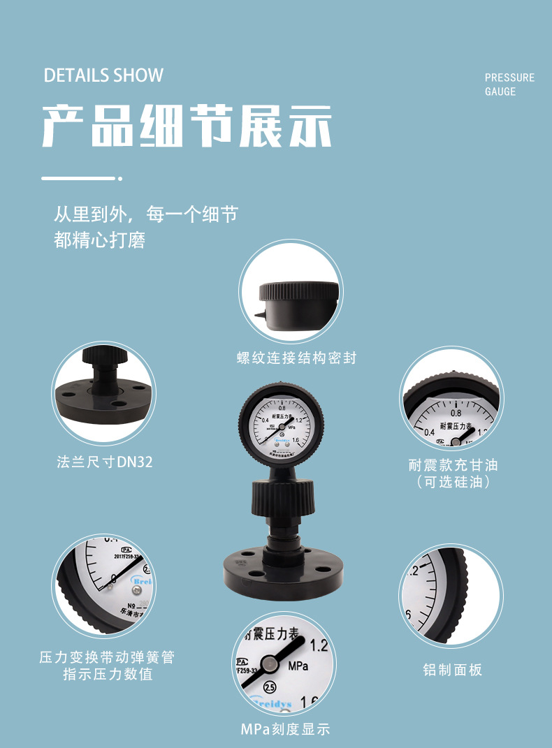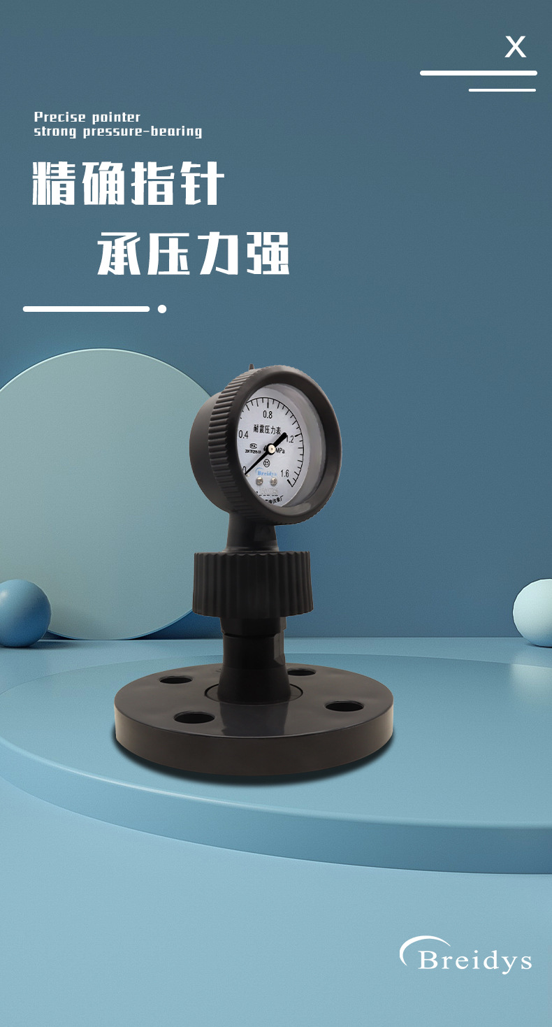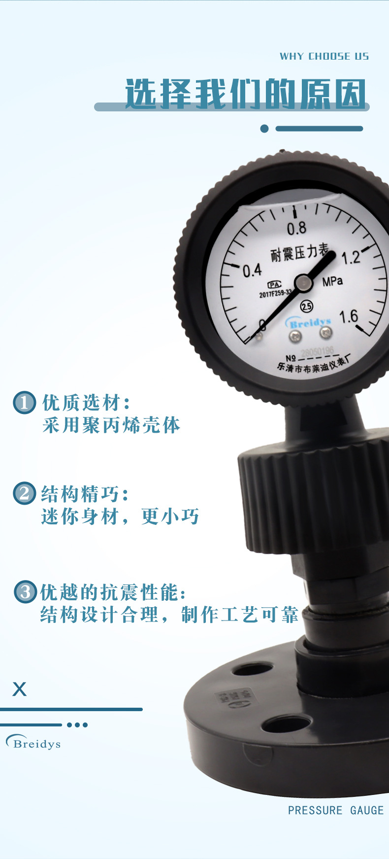 Breidys YPP60DN32 PP Diaphragm Pressure Gauge (0-1.6 MPa) for Acid-Base Corrosion Resistant Water Treatment Systems