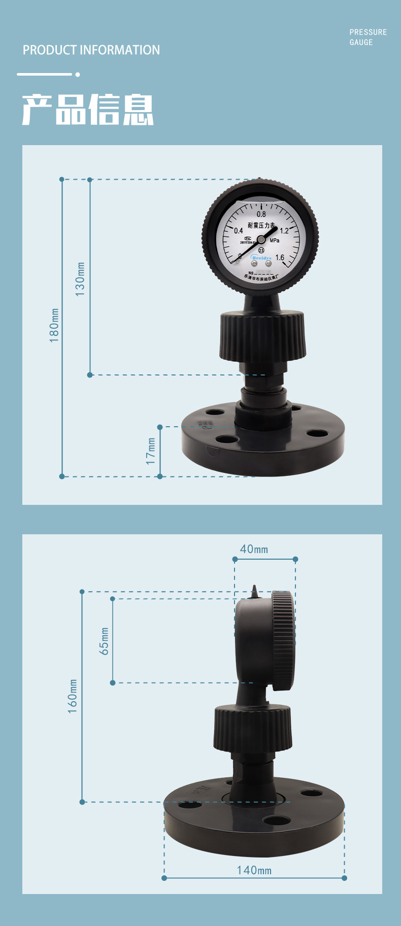 - Wide Compatibility: Specifically designed as a corrosion-resistant PP diaphragm pressure gauge, compatible with various water treatment systems requiring resistance to acid and alkali.