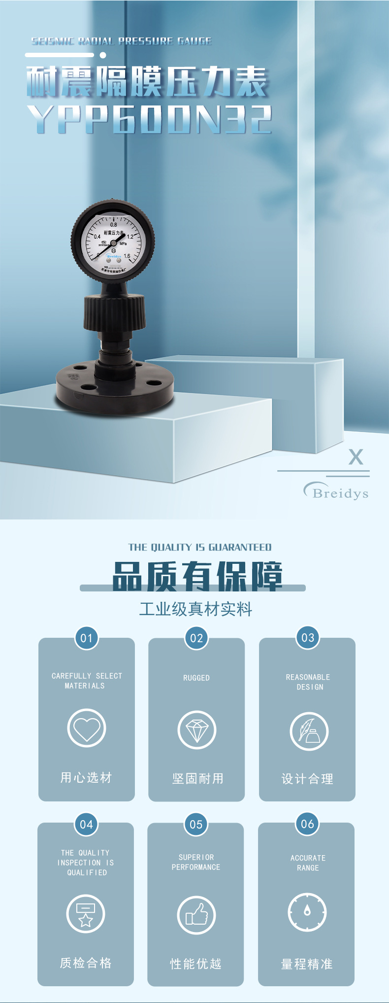 - What You Get: Includes one Breidys YPP60DN32 PP Diaphragm Pressure Gauge, ideal for environmental water treatment, chemical processes, and other demanding industrial applications.